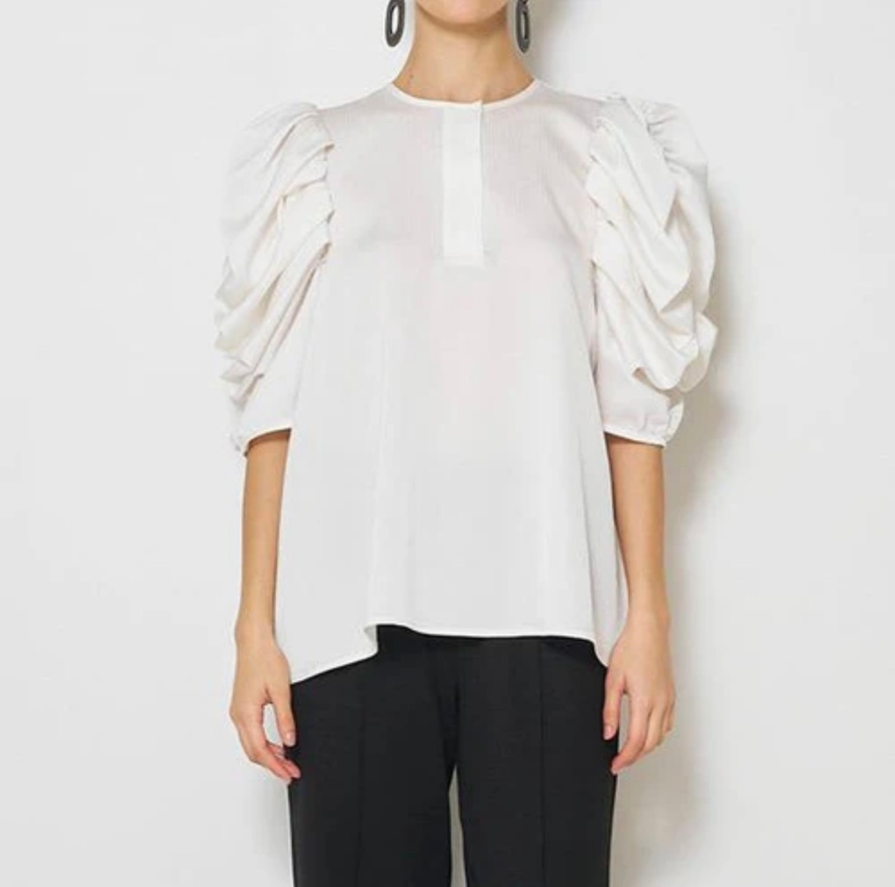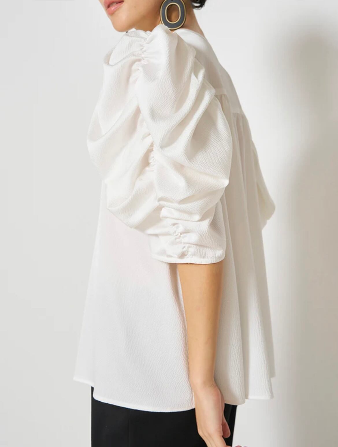 袖のボリュームがポイントになった綺麗めブラウス。