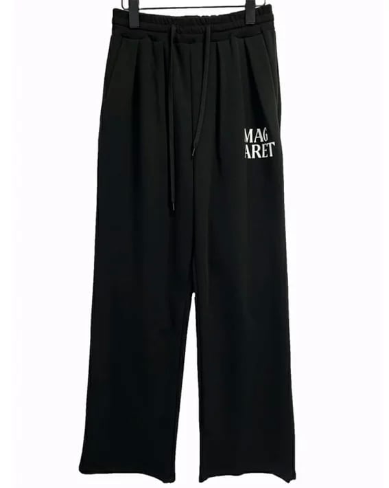 フロントに「MAGARET」のロゴをあしらった、ゆったりとしたシルエットが魅力のワイドスウェットパンツ。落ち感のある素材でラフになりすぎず、タウンユースにも最適。ウエストはゴム仕様&ドローストリング付きで、ストレスフリーな穿き心地です。