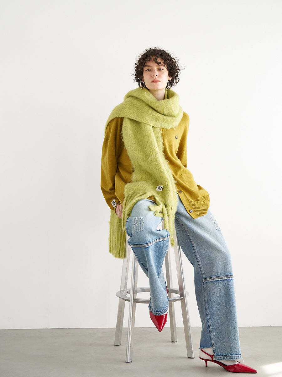ふわふわの起毛加工を施した大判のニットマフラーです。
