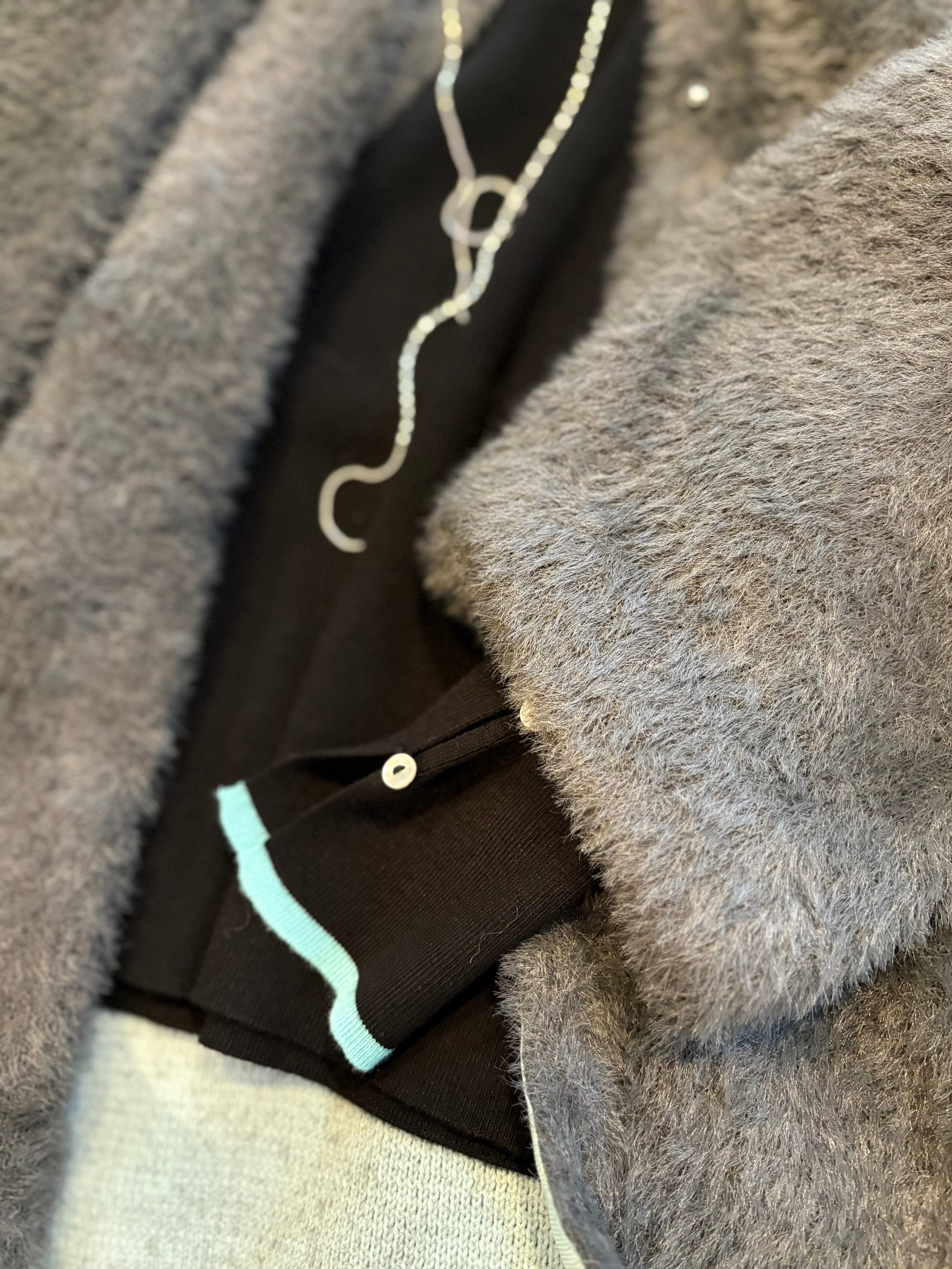 カーディガンよりも暖かくアウターよりもさっと着られる、旬のバイカラーのコーディガンです。