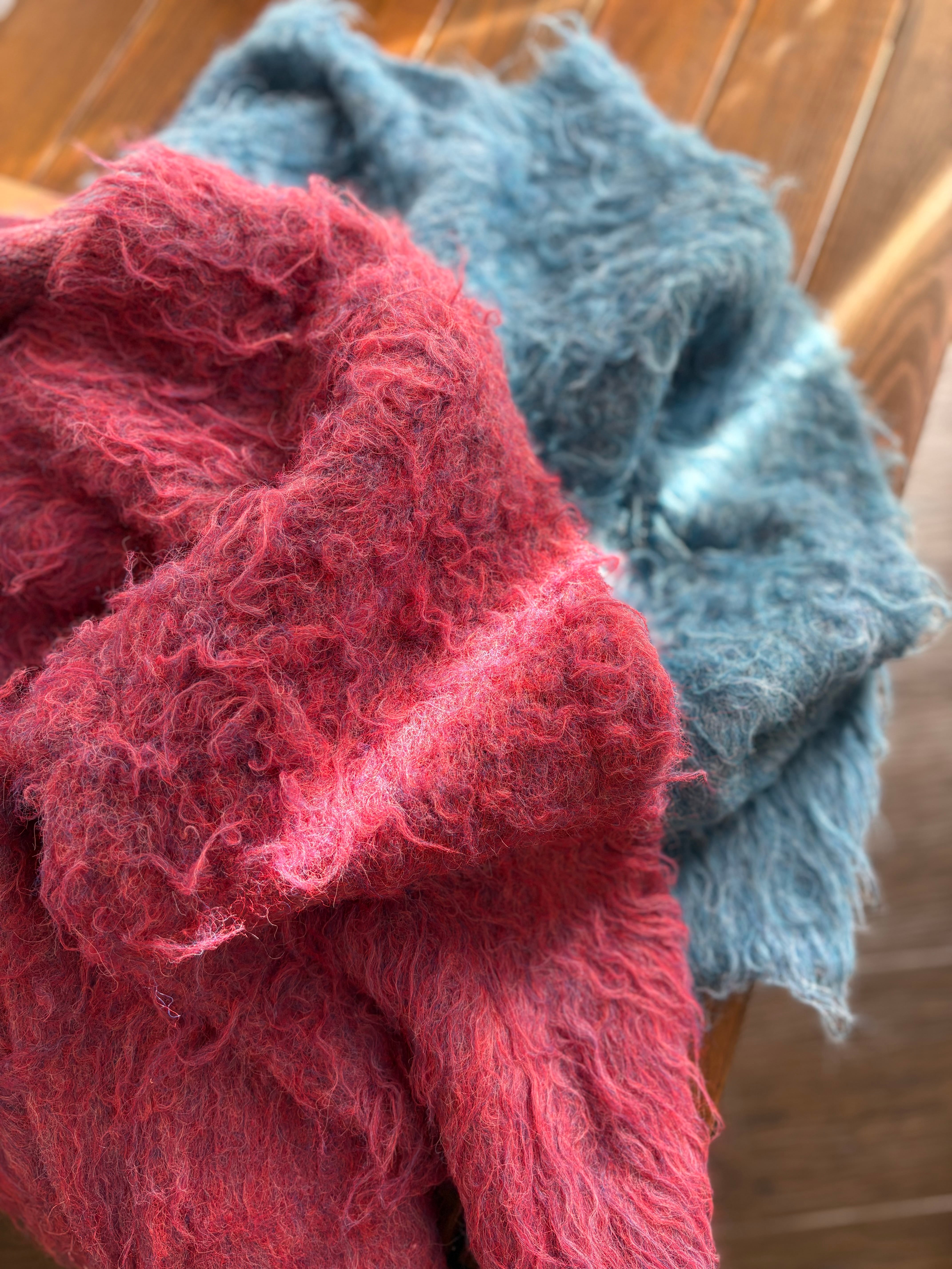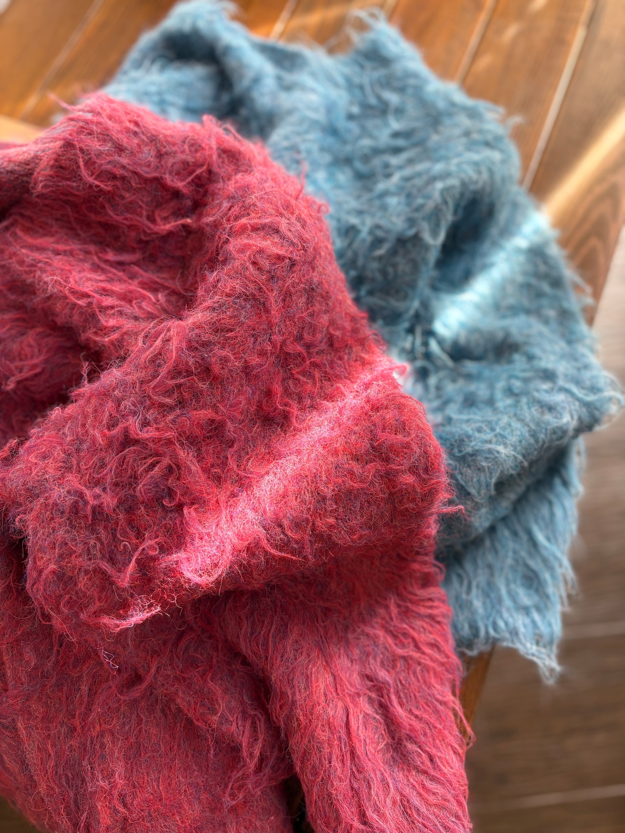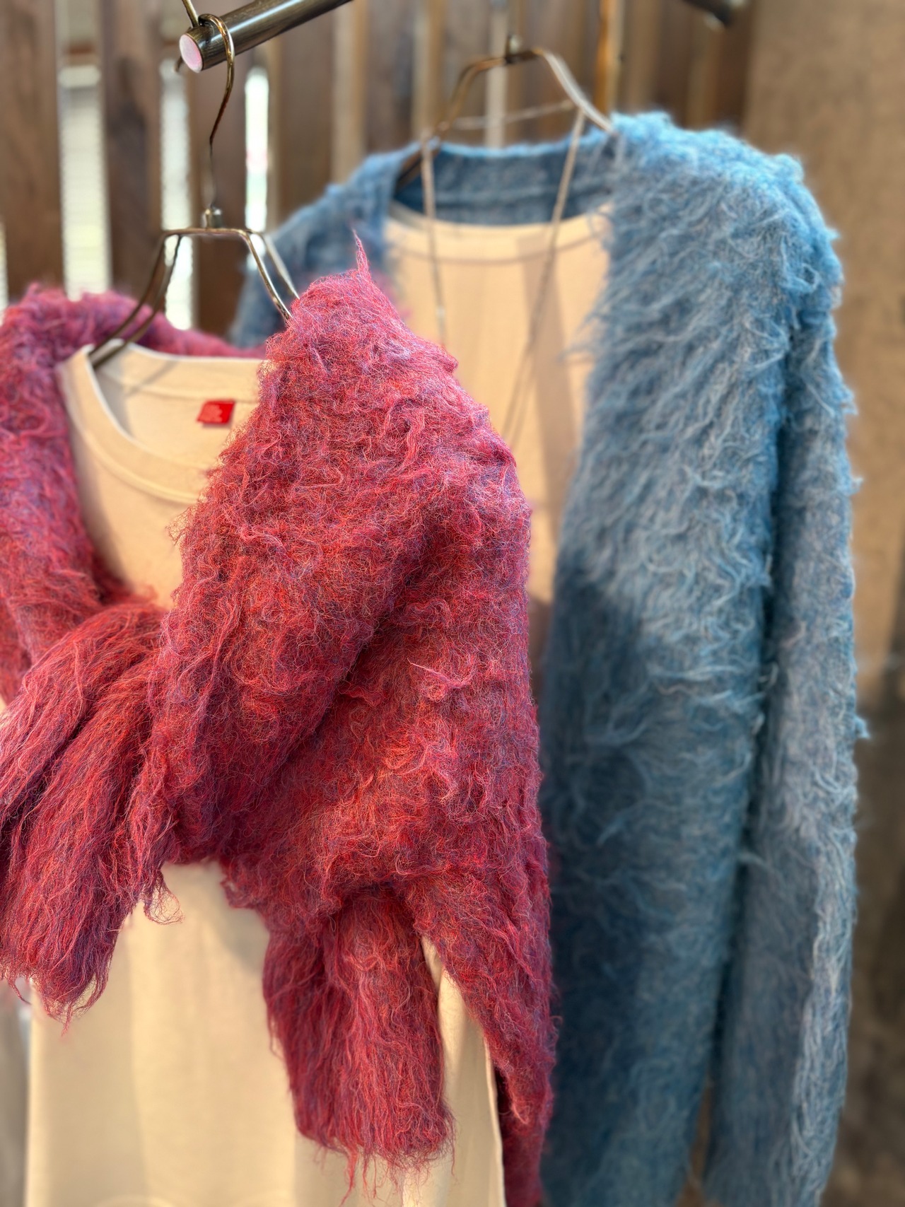 ふわっと毛足の長いニットであたたかみのある素材感です。