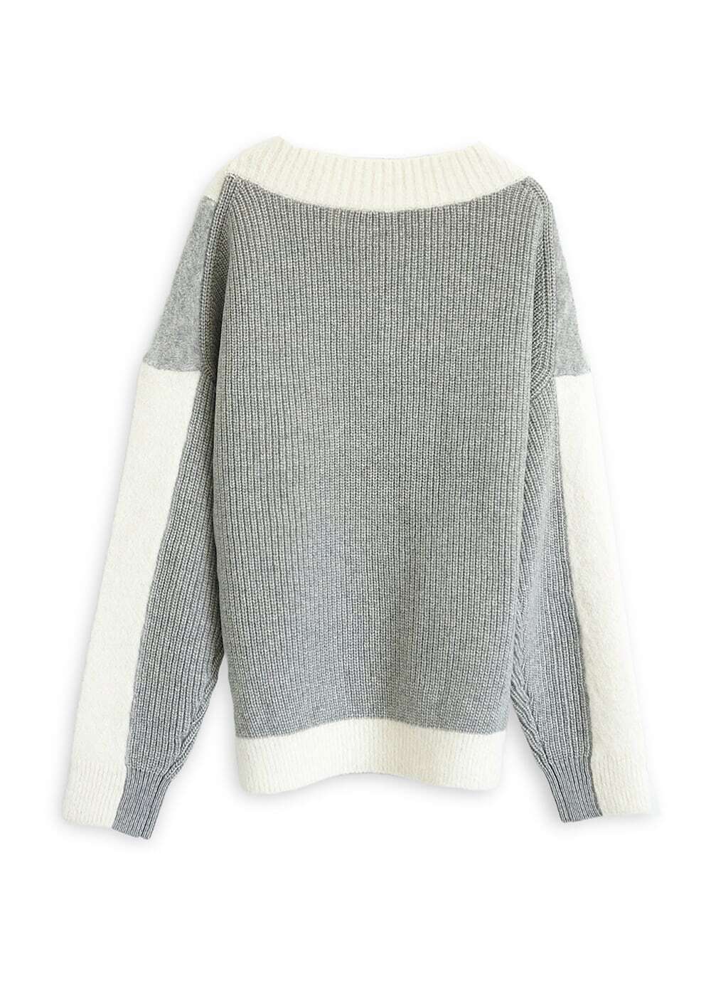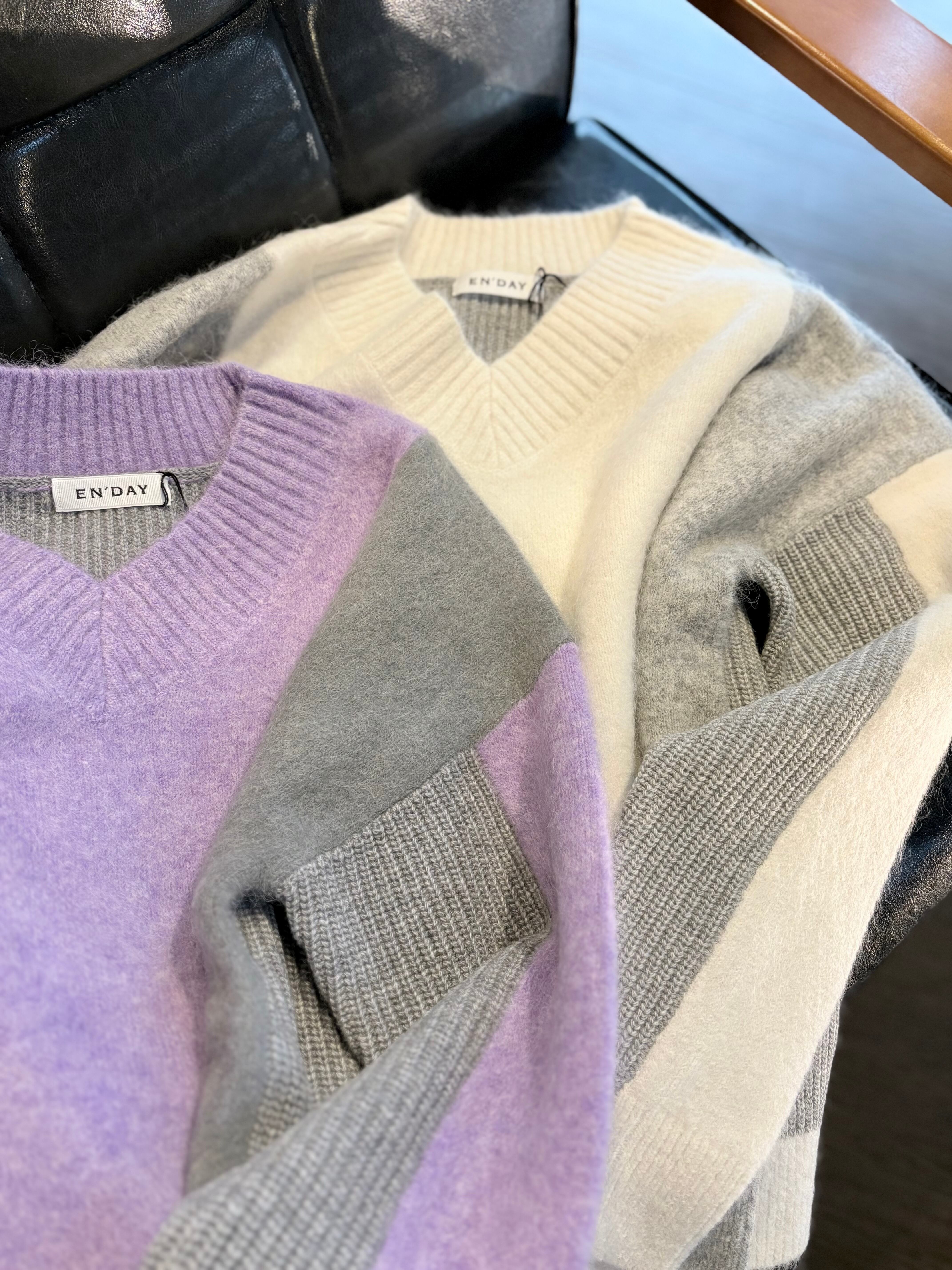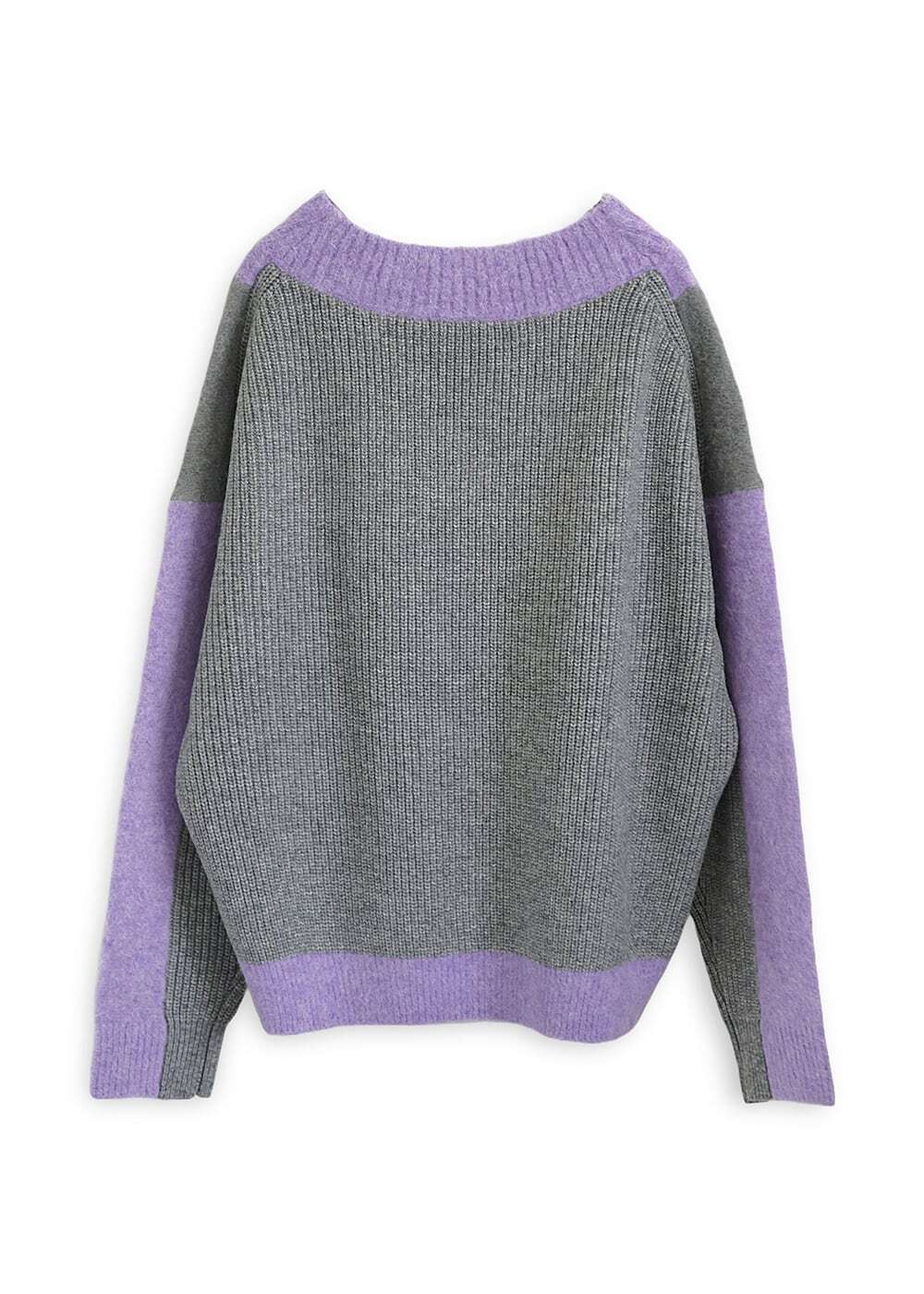 バイカラー部分には片畦柄をあしらい、ニット一枚でも自然に着映えるコントラスト。
