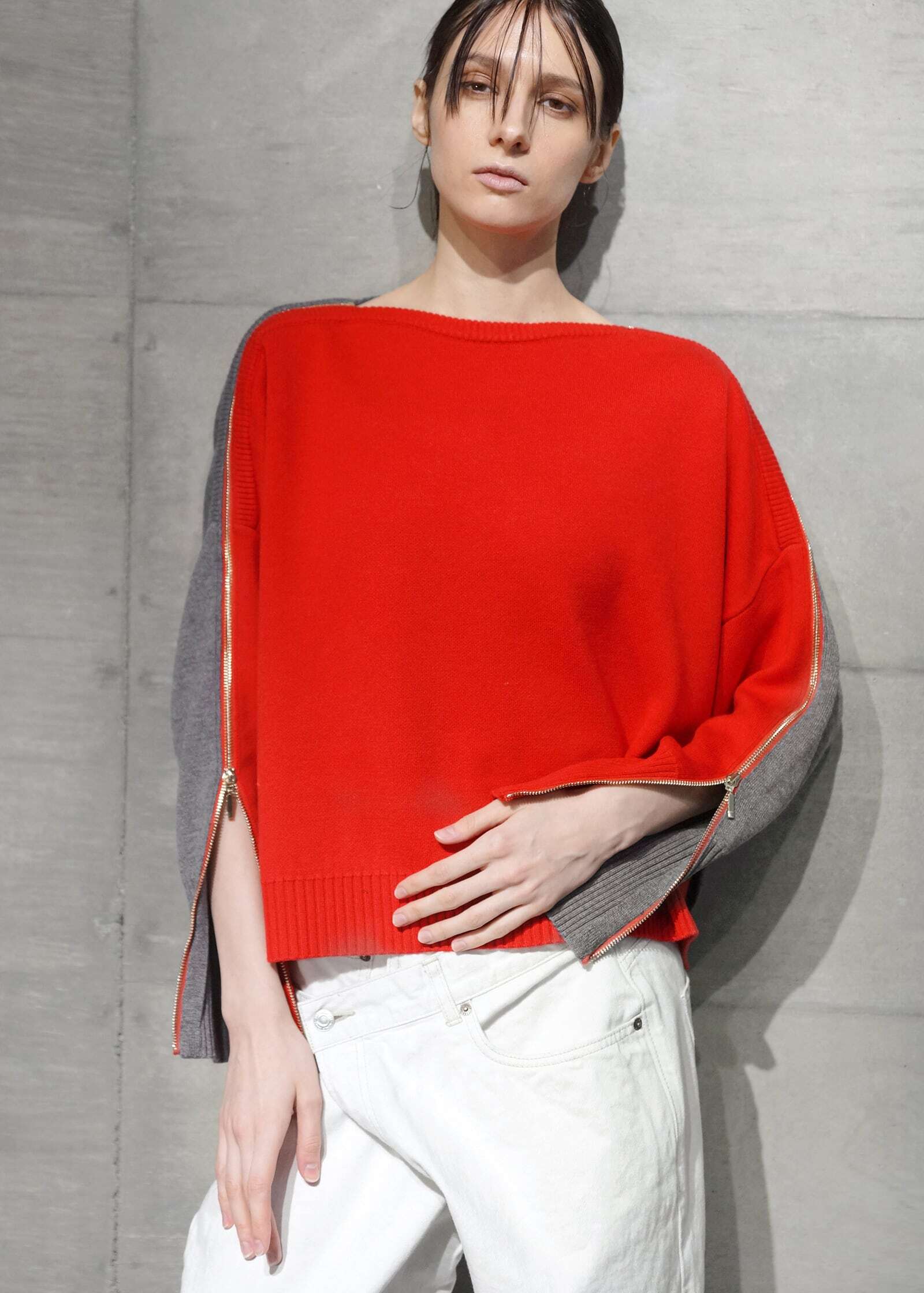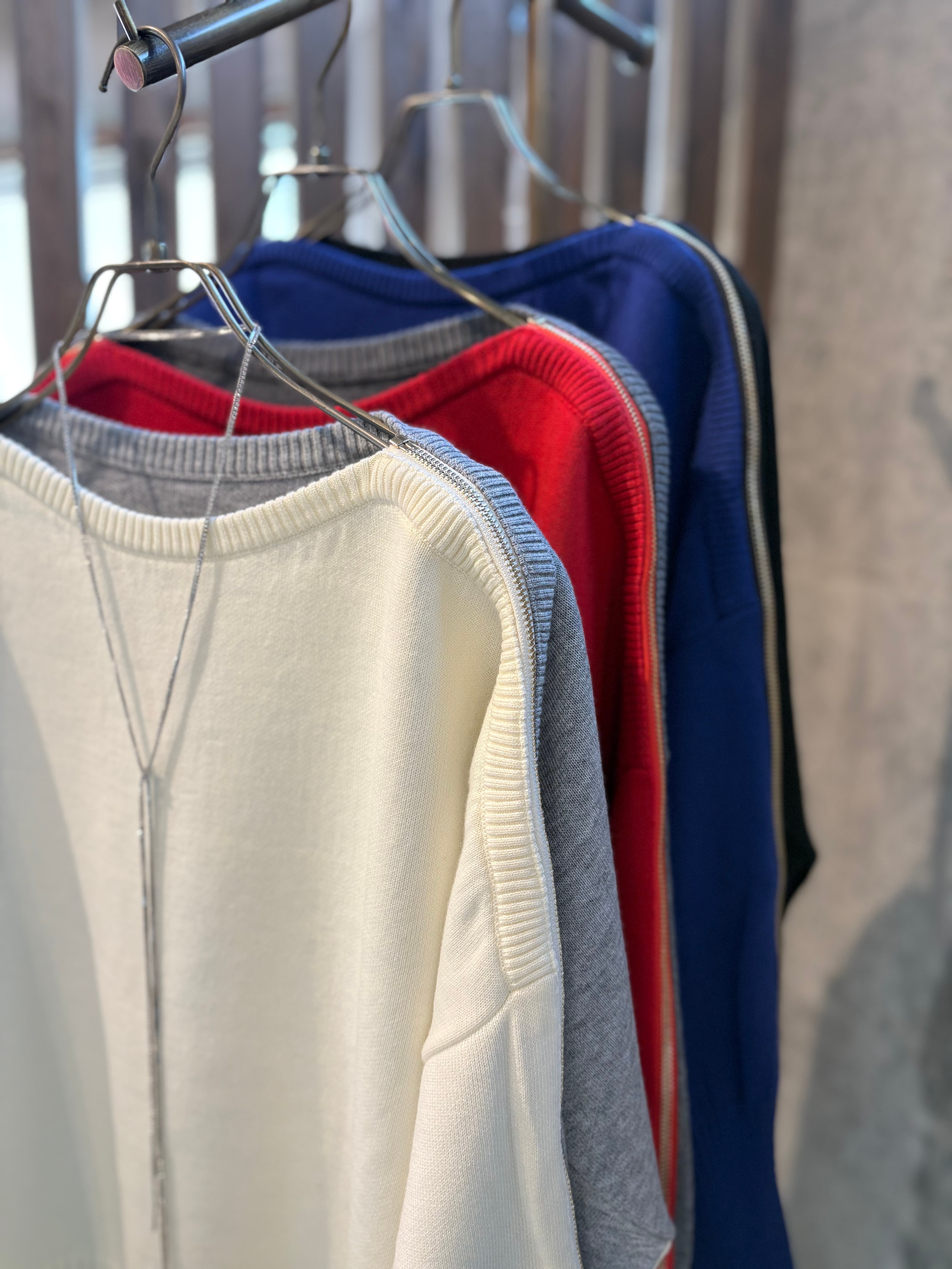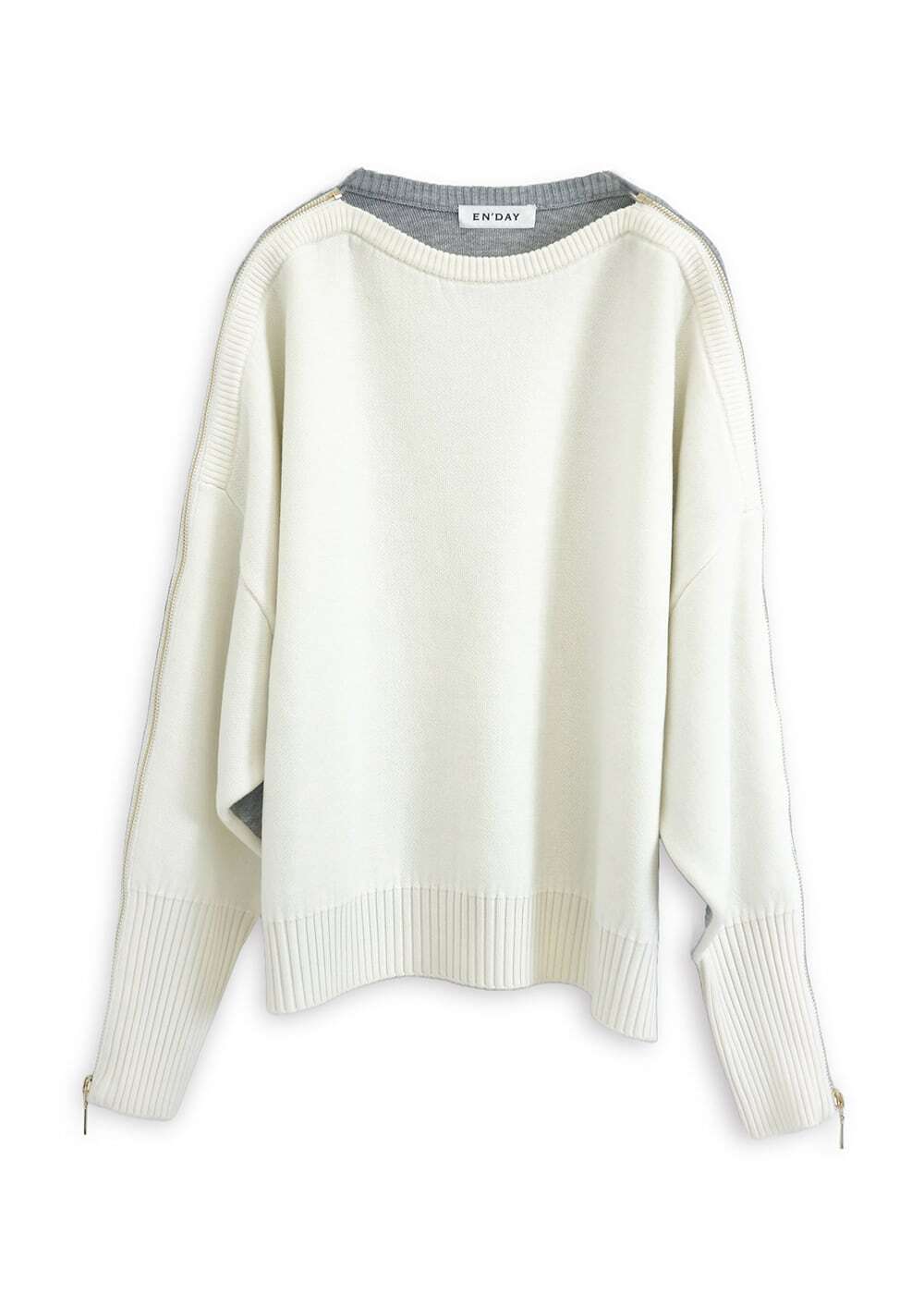 肩から袖口までのファスナーは、袖口を開けるとスリットスリーブ風に軽やかに揺れる表情に変化。パンツにはリラックス感を添え、スカートには動きのあるモード感をプラス。着こなしの幅がぐっと広がるアクセントに。