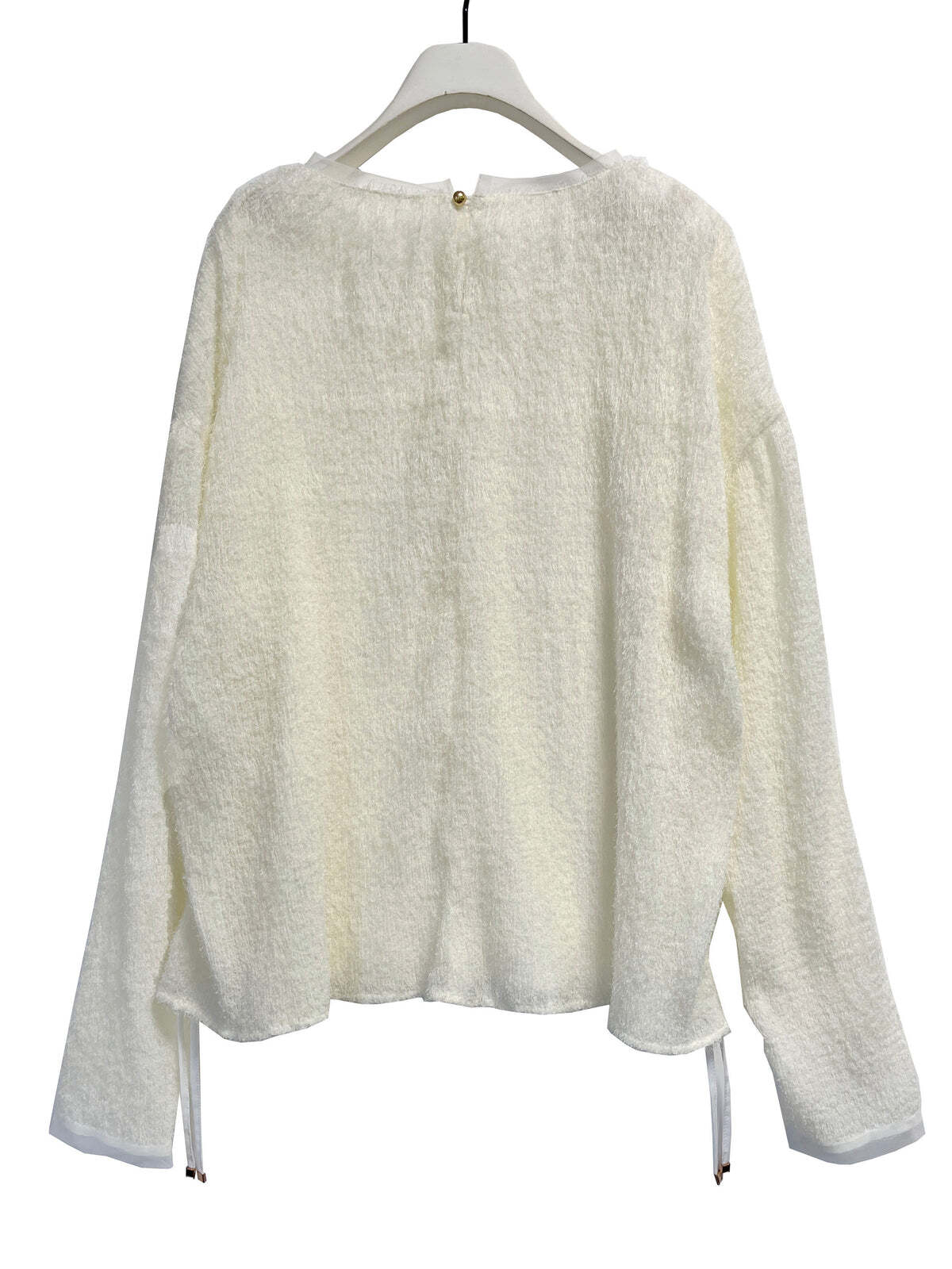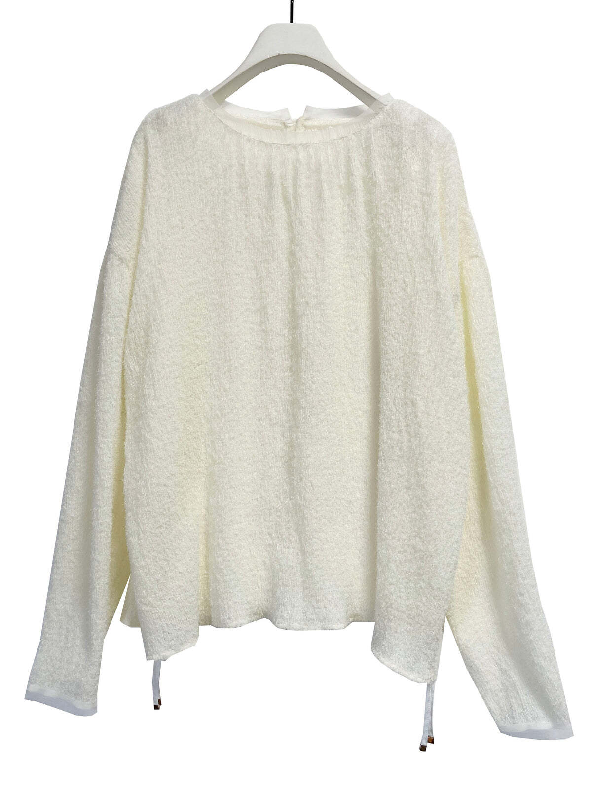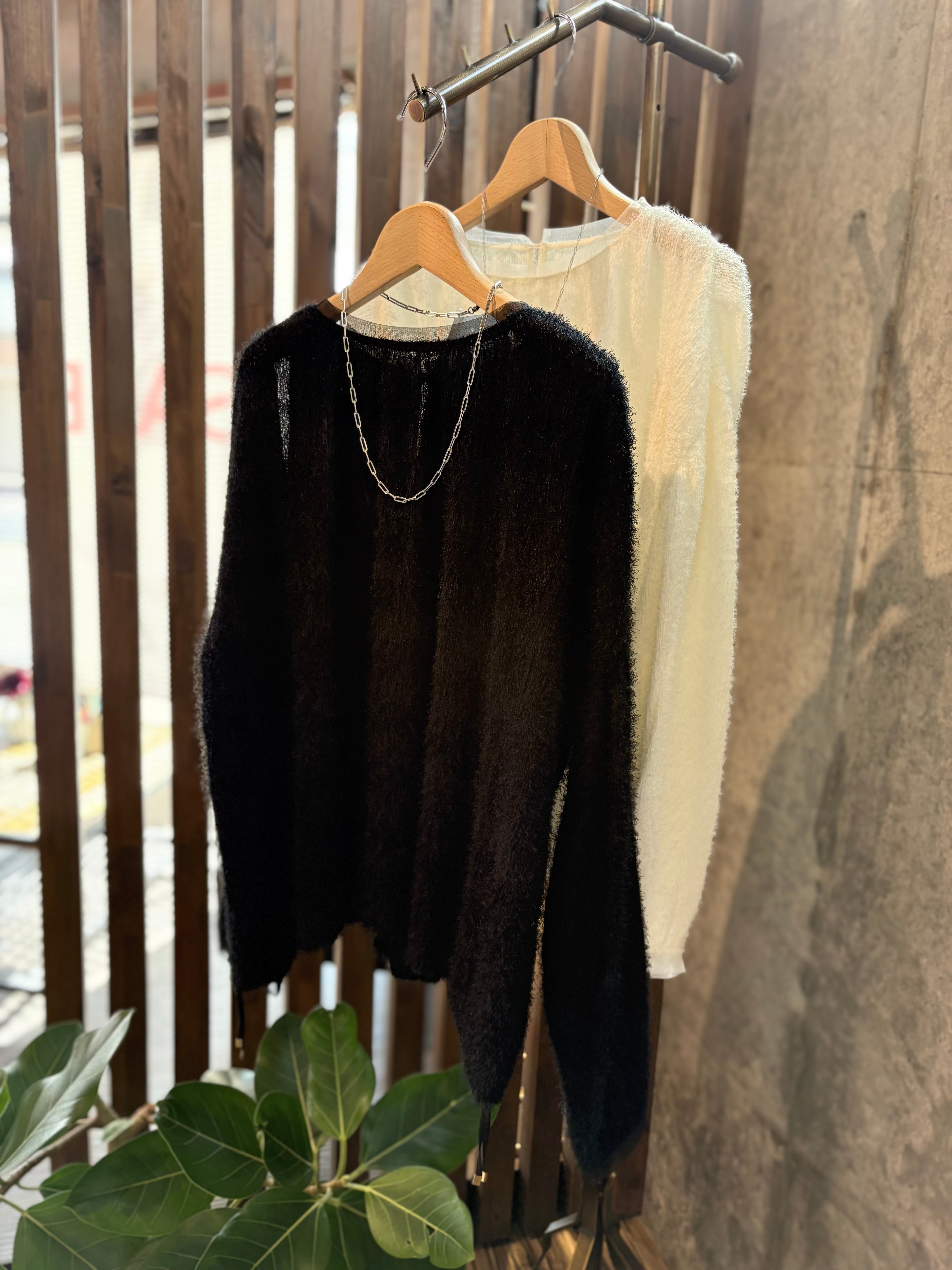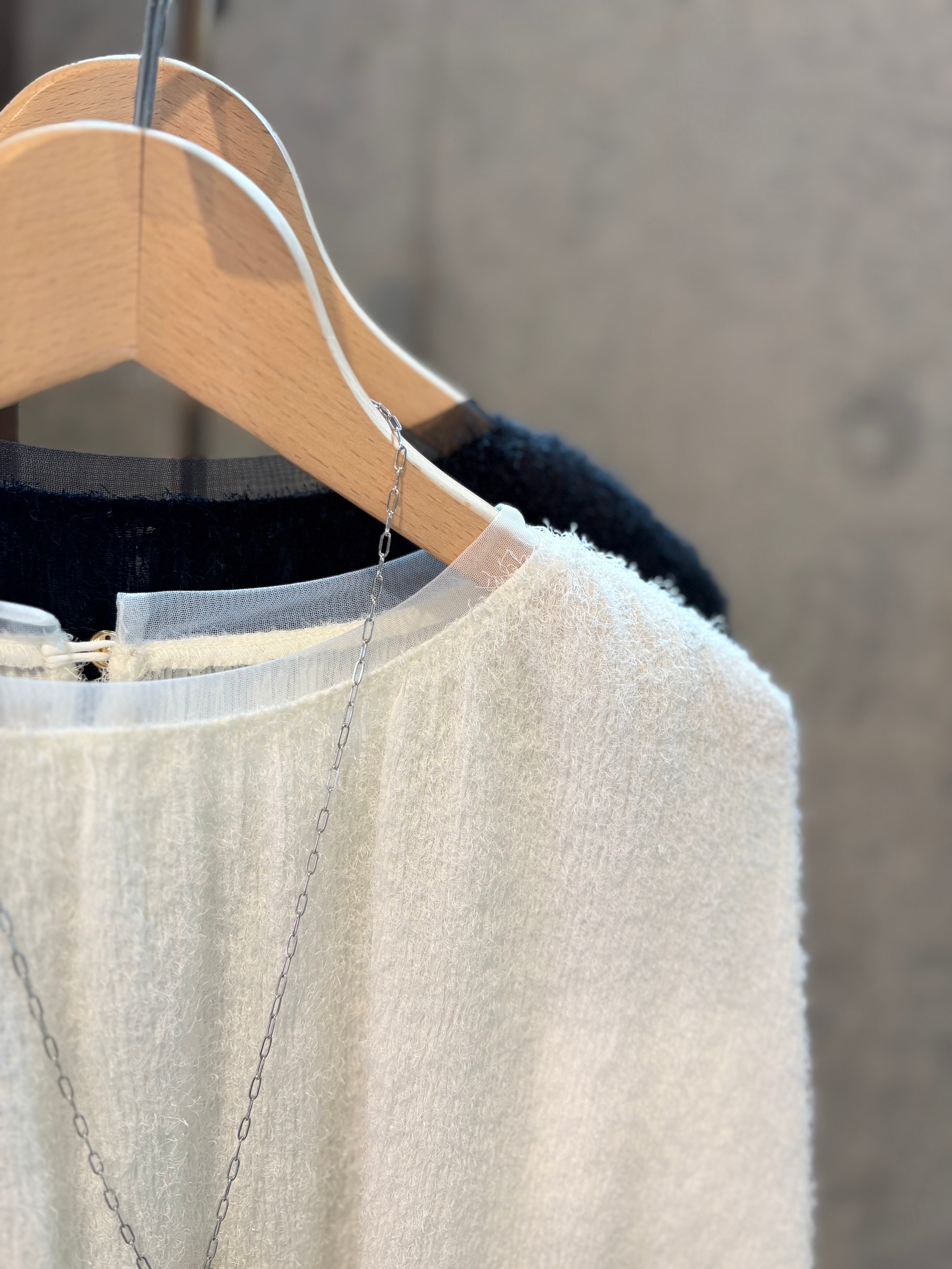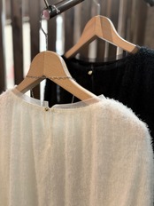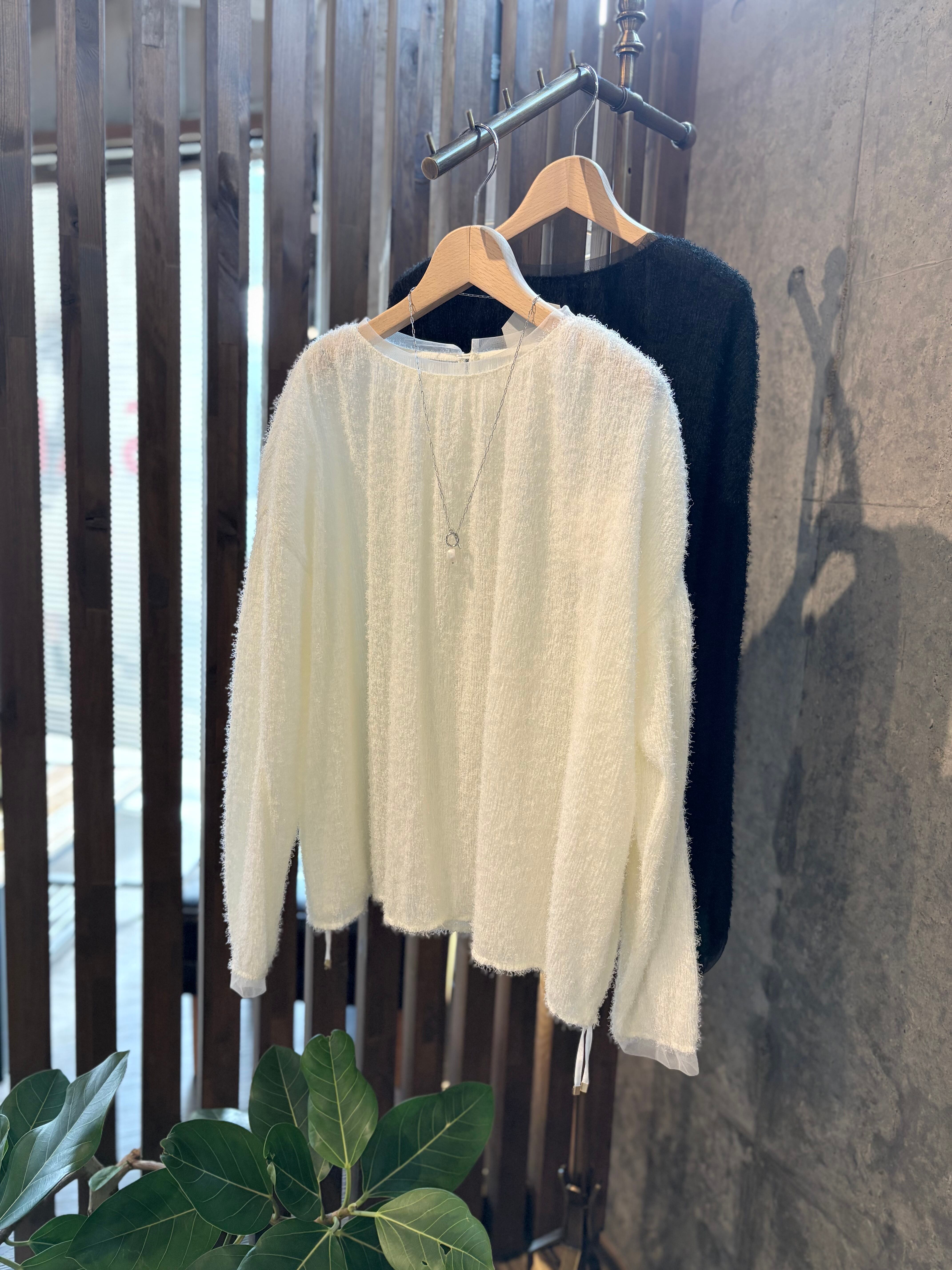 ふわふわ感のあるシャギー素材のブラウスは、一見温かみのある表情ですが、基布が楊柳のようになっているので、