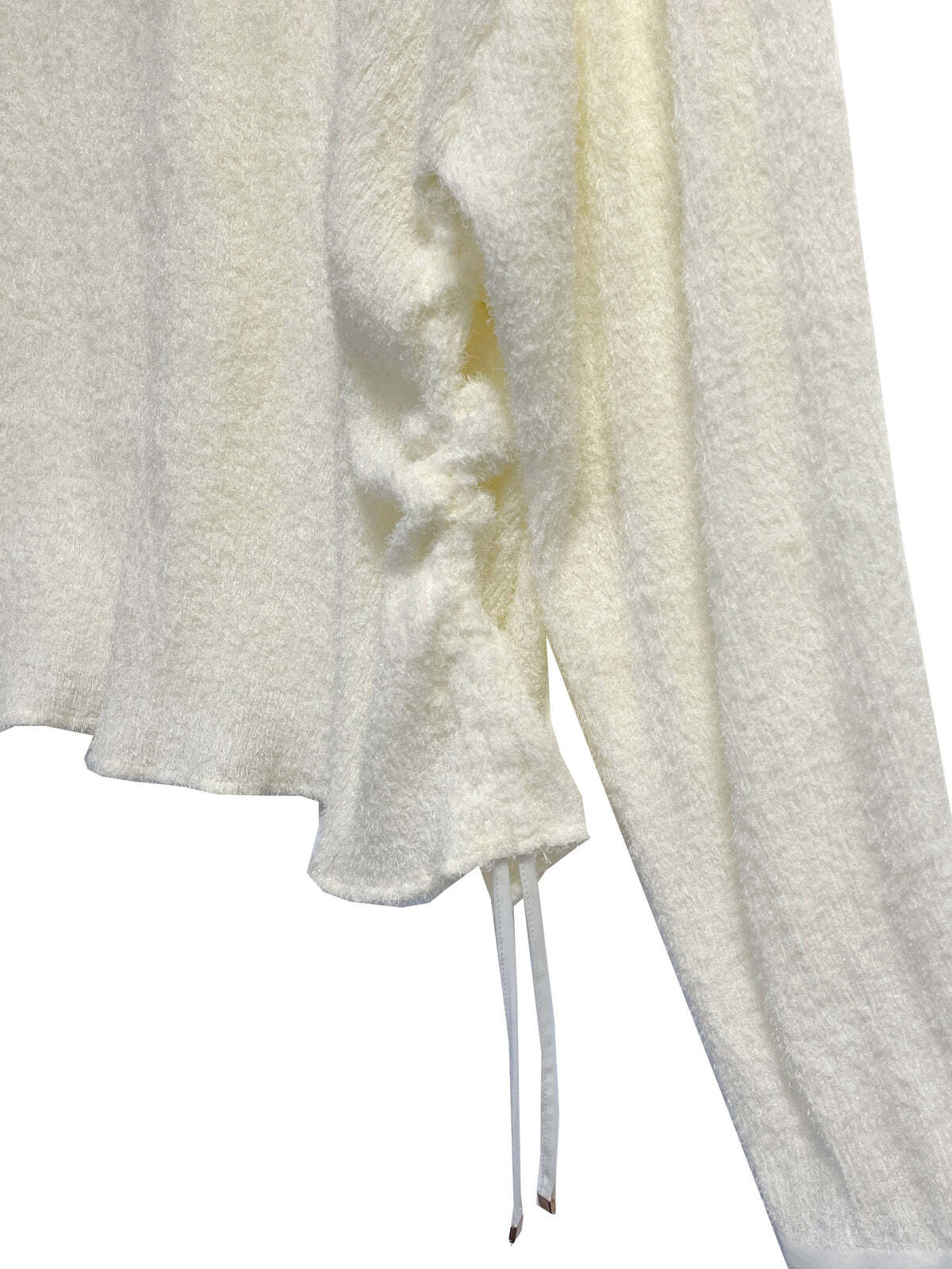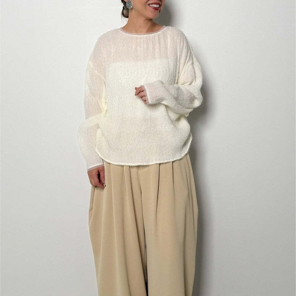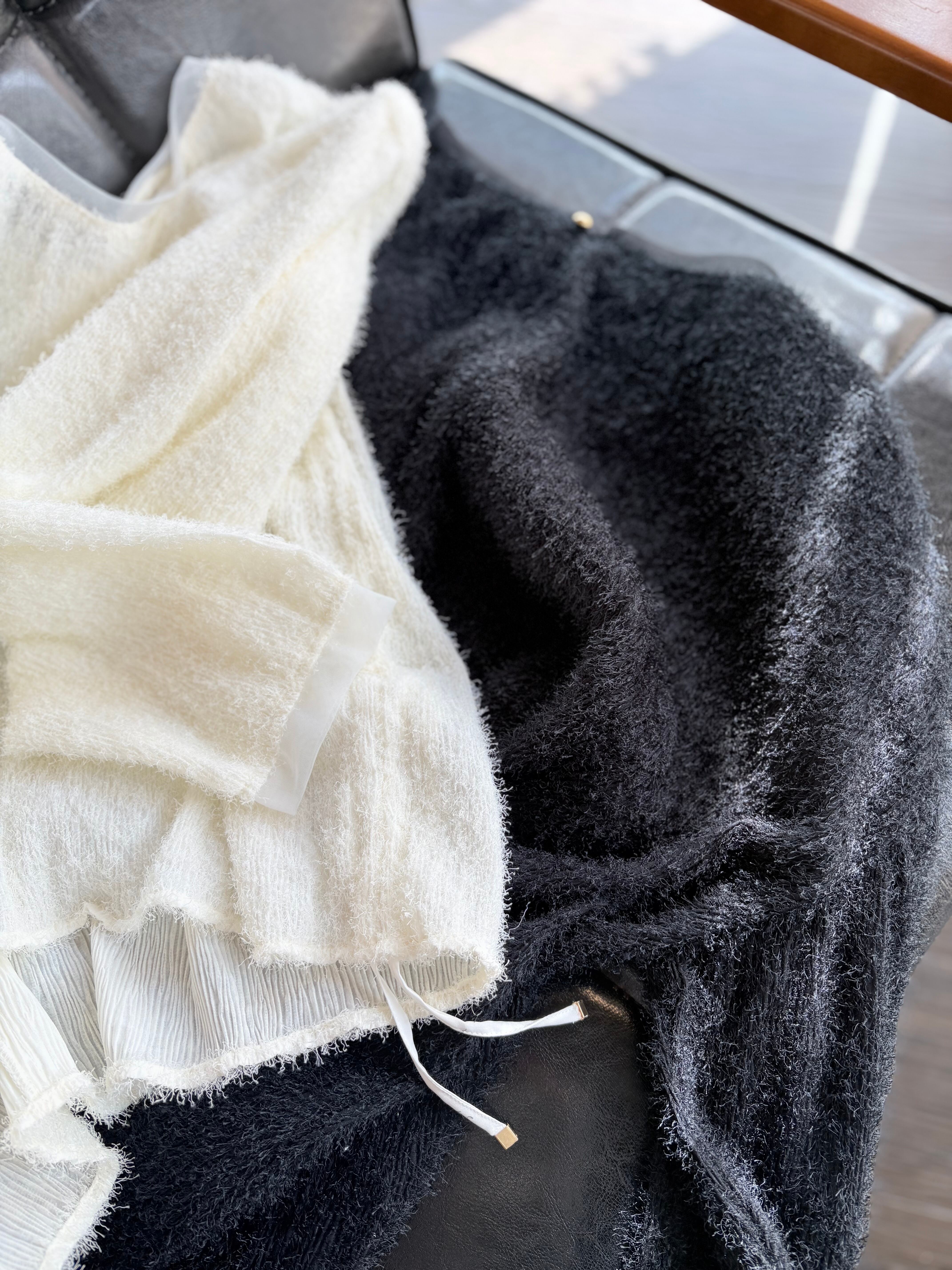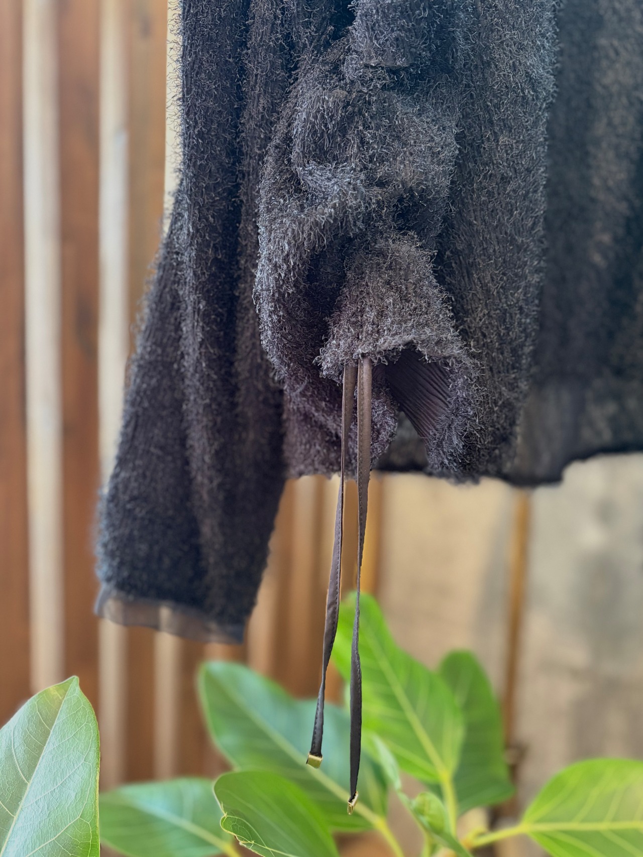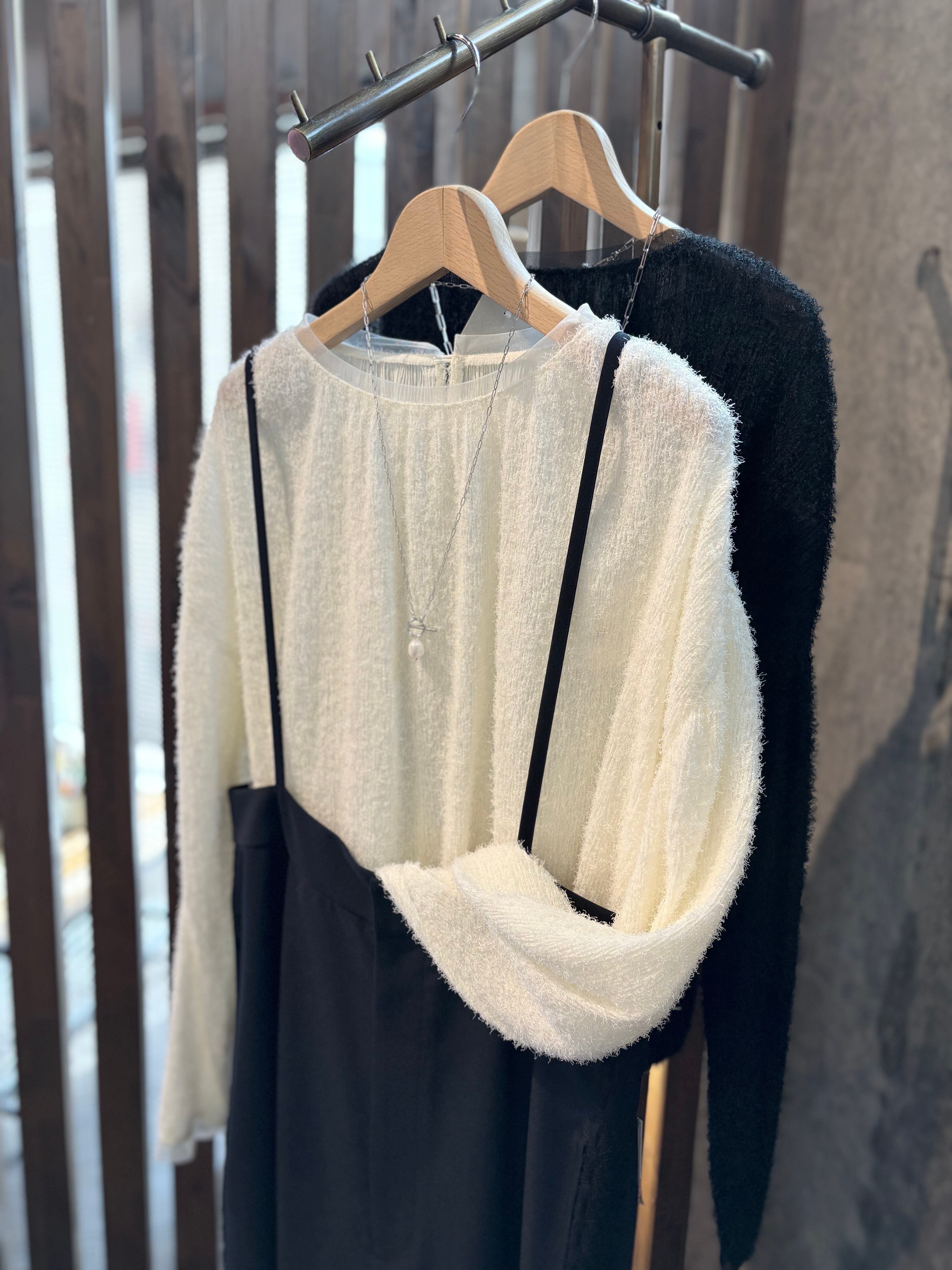 ふわふわ感のあるシャギー素材のブラウスは、一見温かみのある表情ですが、基布が楊柳のようになっているので、