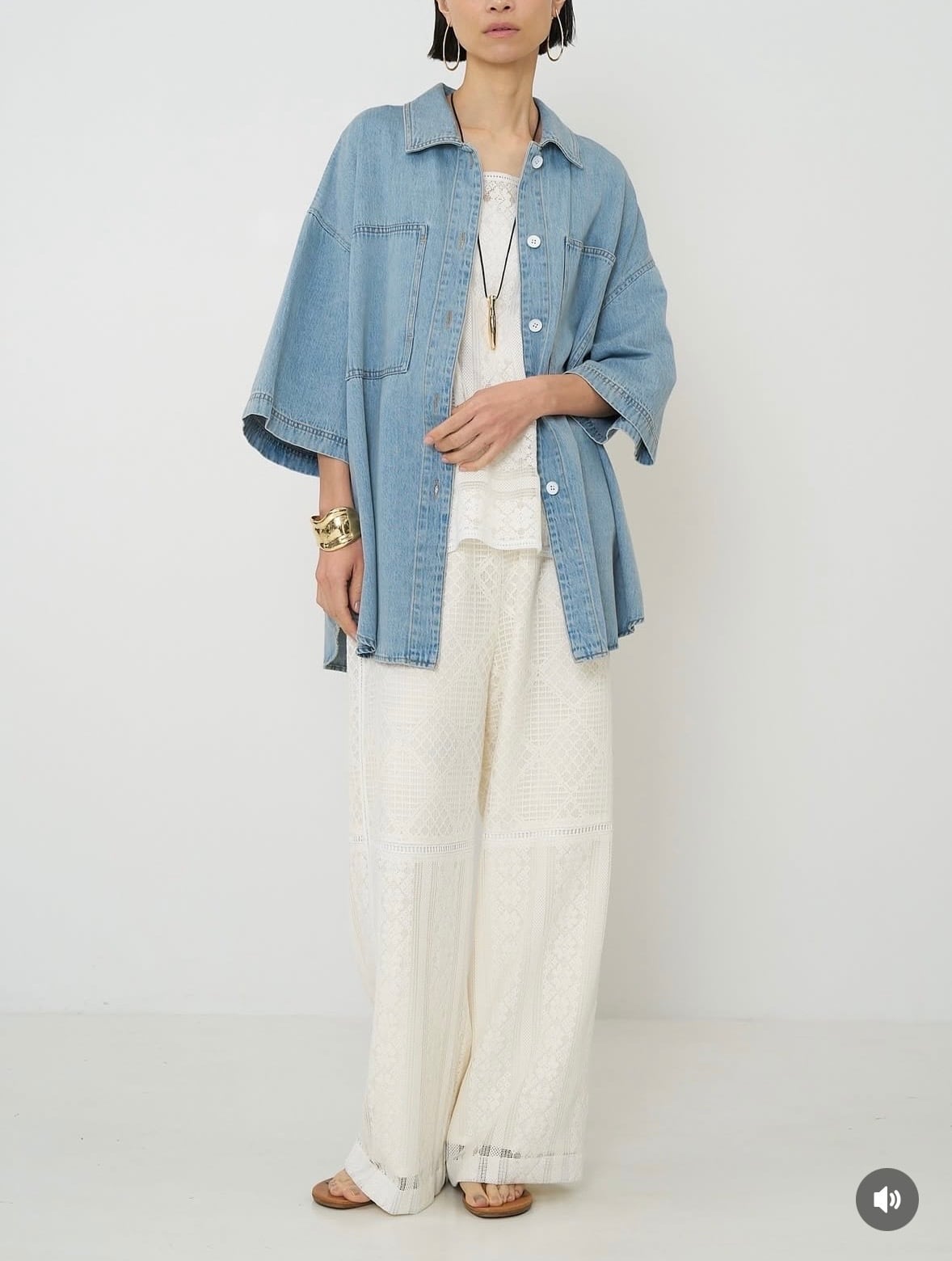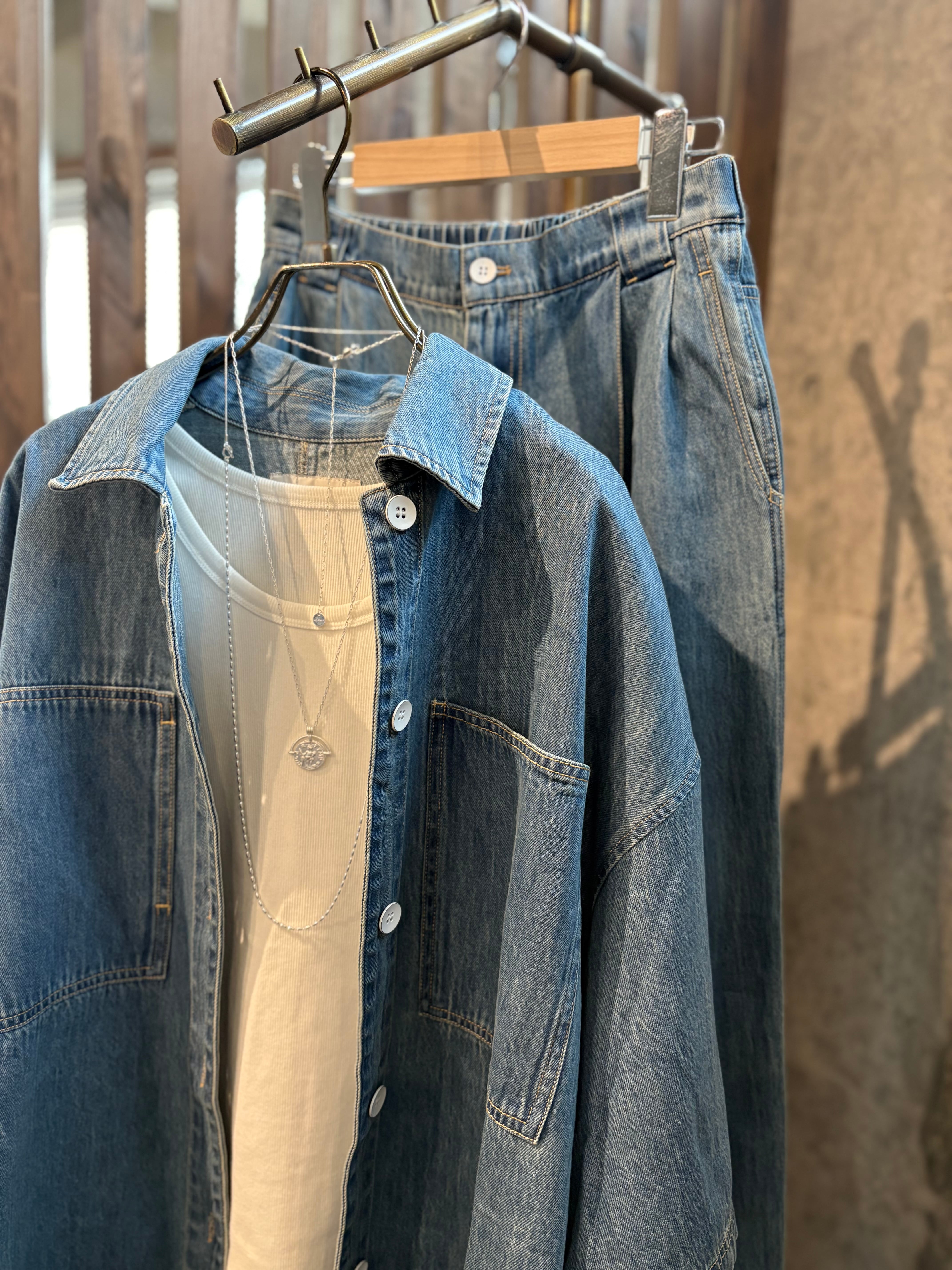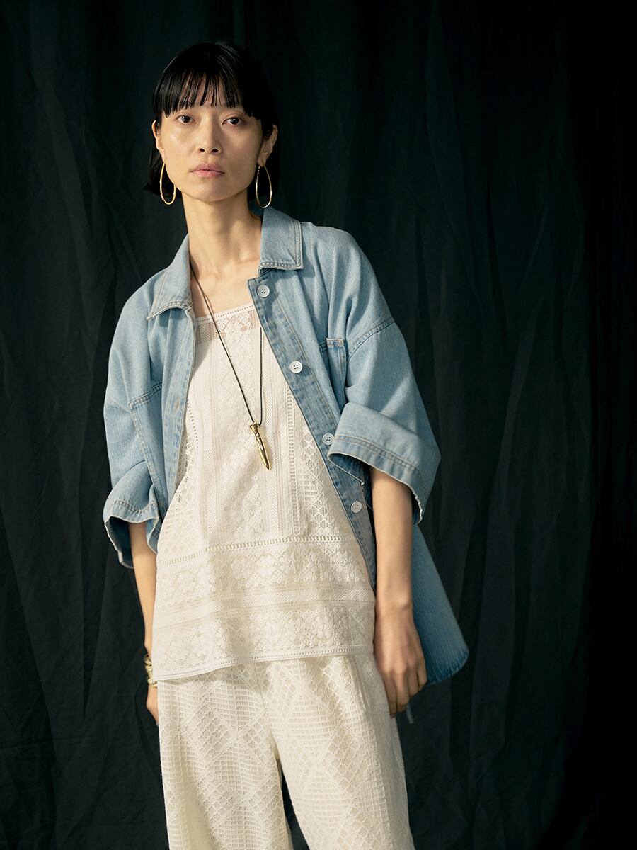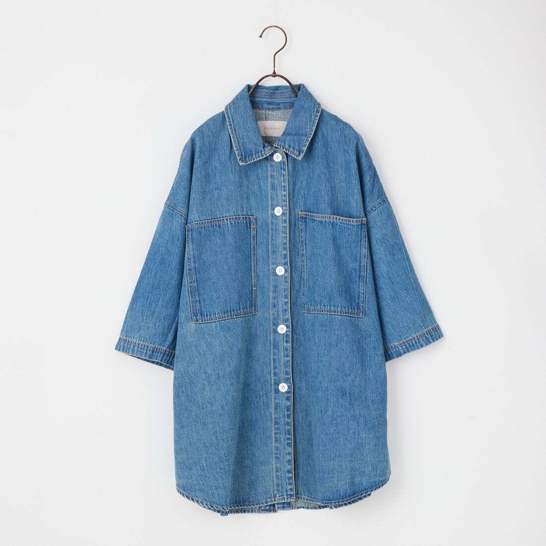 リヨセル混の柔らかな落ち感が特徴のデニム素材を使用した、カジュアルながらも女性らしさを引き立てる一着。