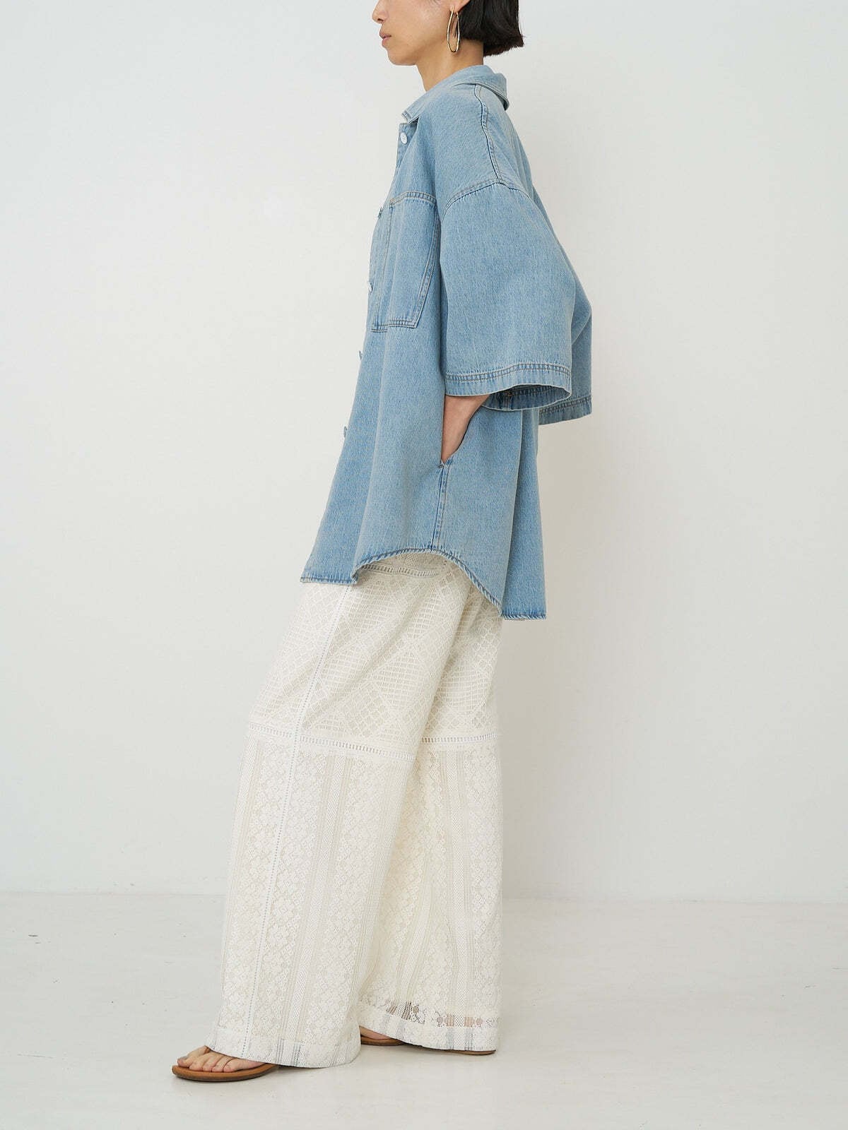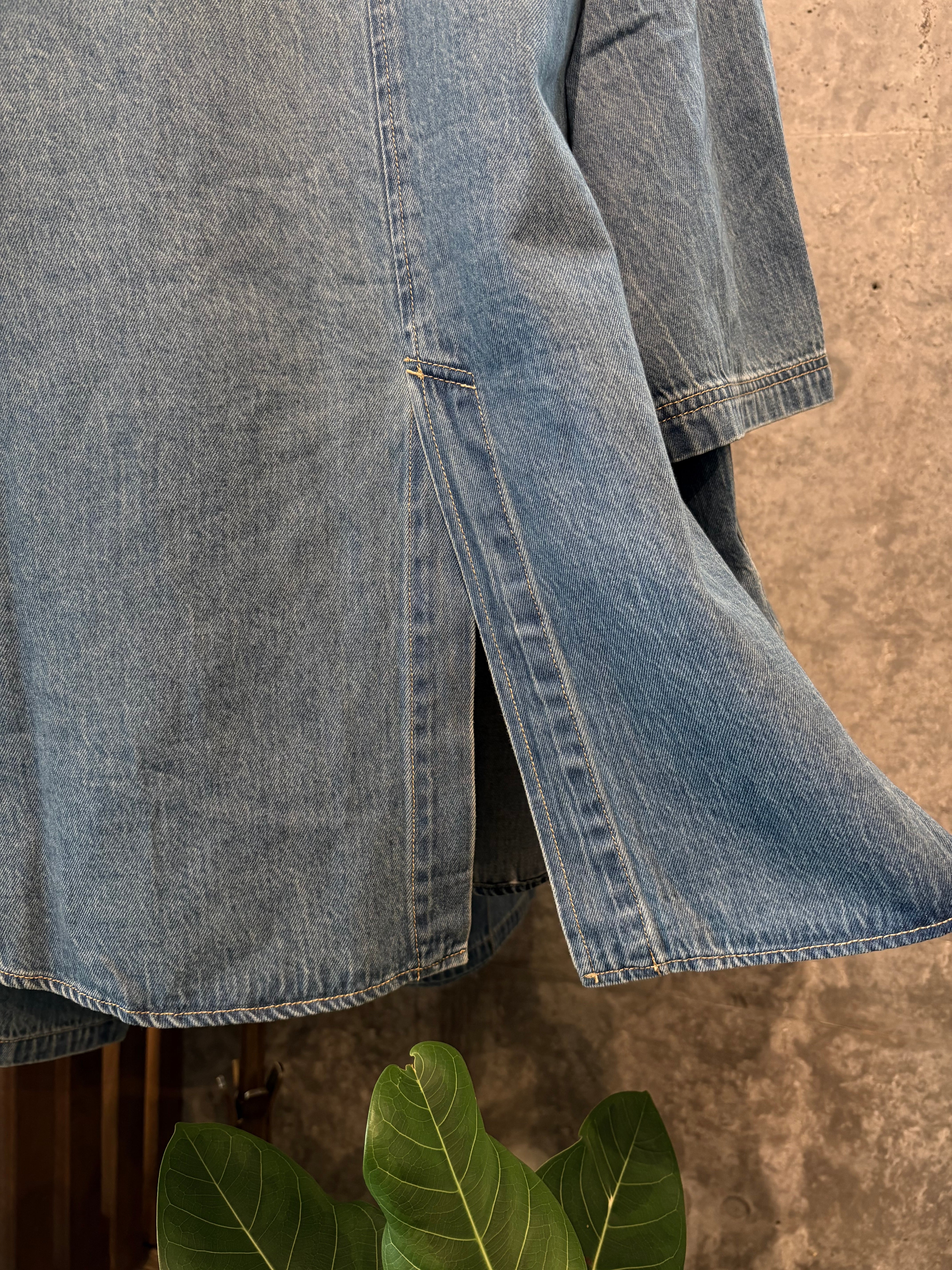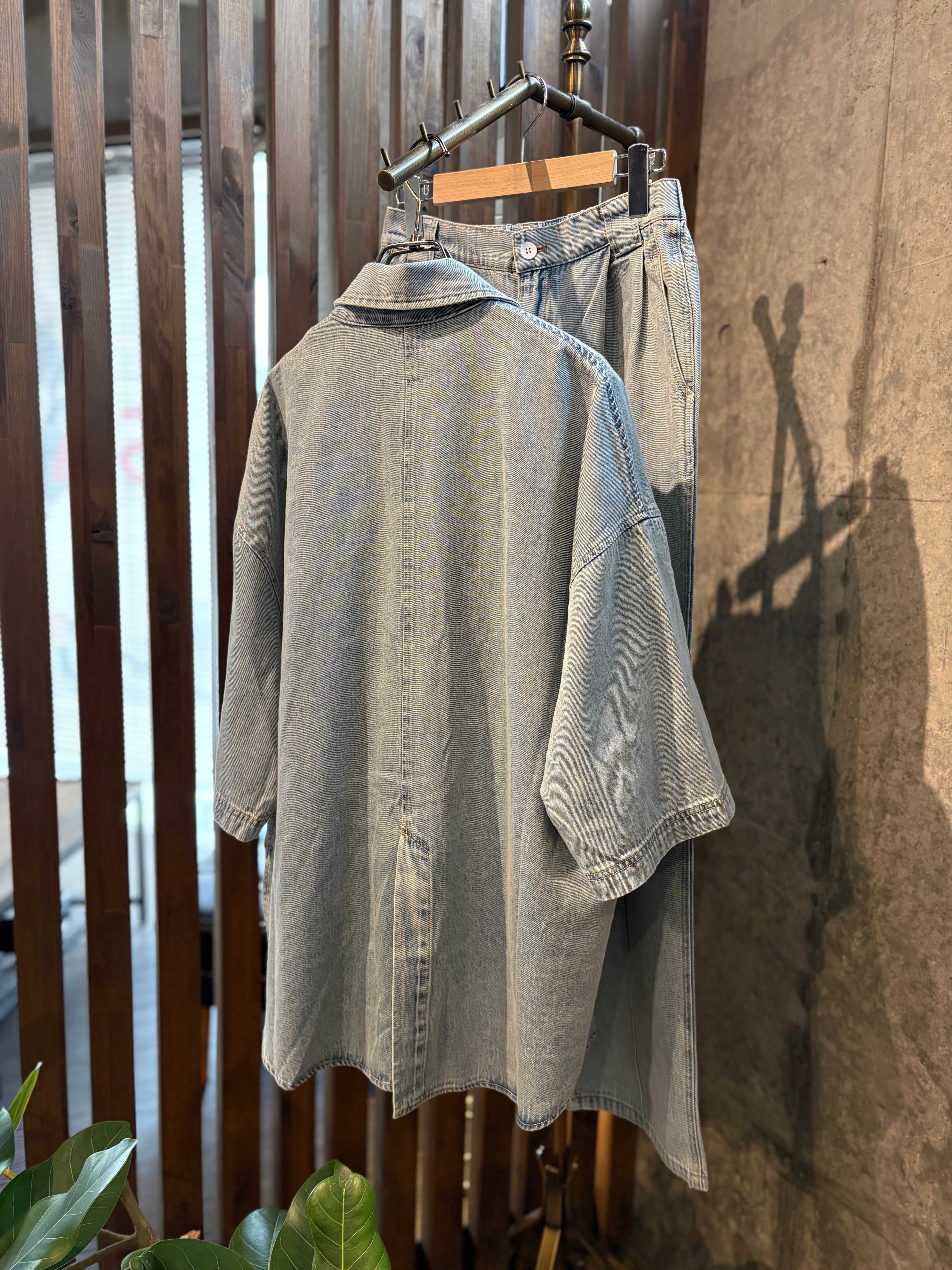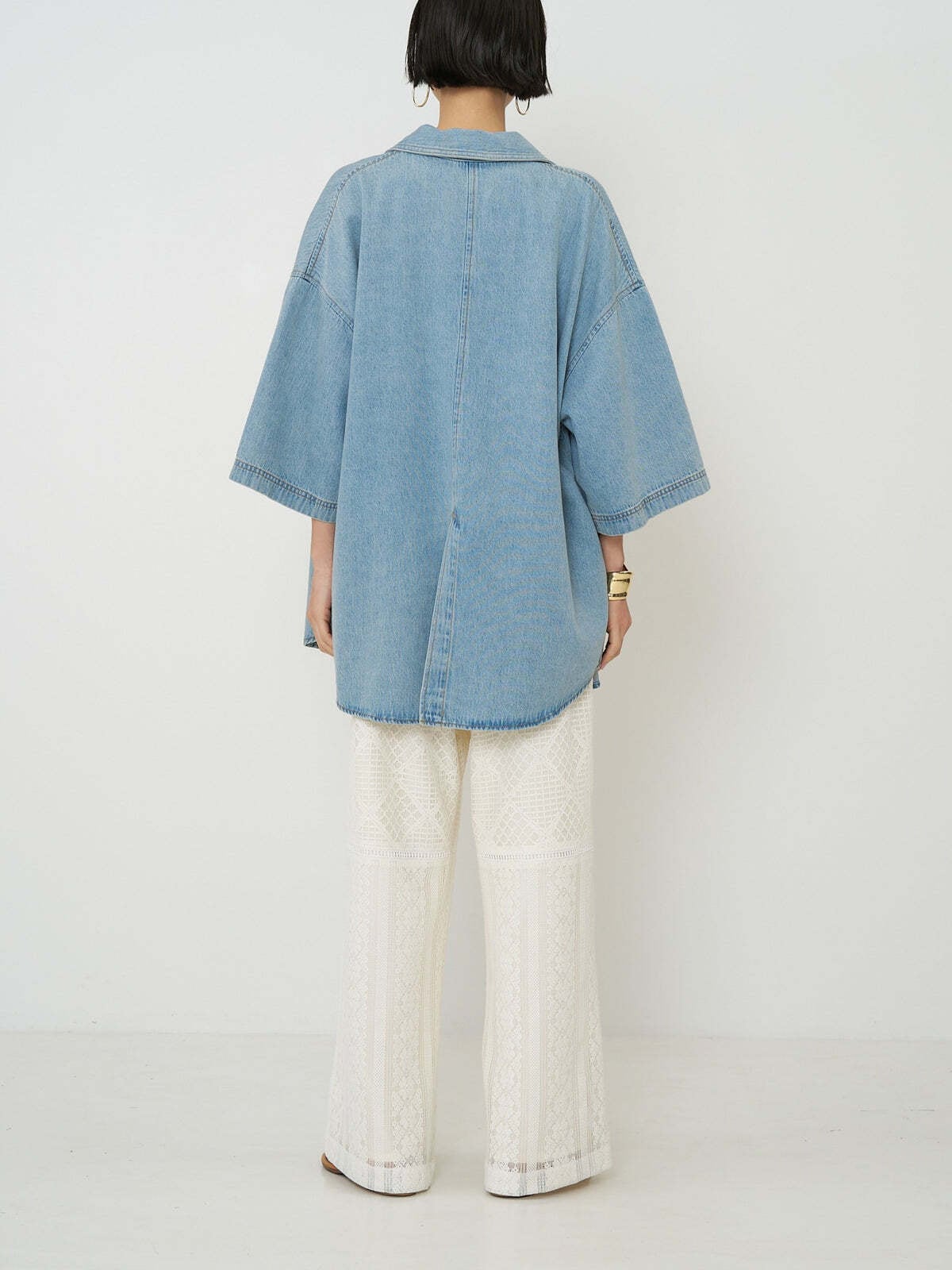 リヨセル混の柔らかな落ち感が特徴のデニム素材を使用した、カジュアルながらも女性らしさを引き立てる一着。