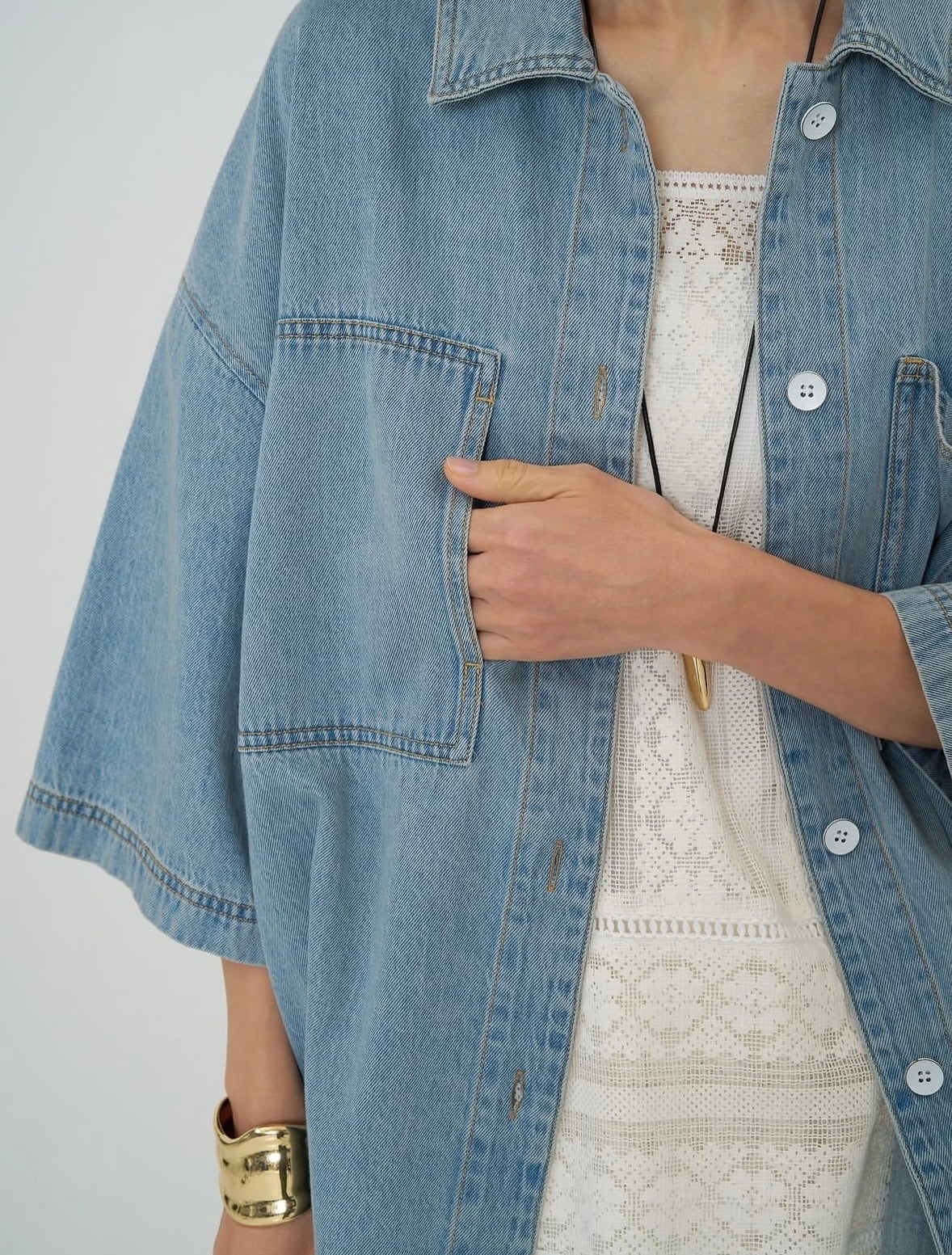 シャツのような軽やかな仕立てと六分袖で、春らしい軽快なムードで着こなせます。