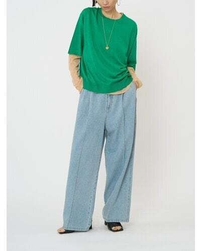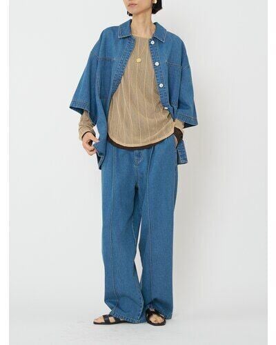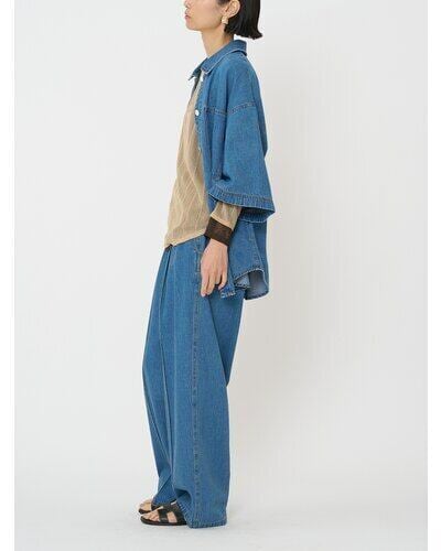リヨセル混の柔らかな落ち感が特徴のデニム素材を使用した、カジュアルながらも女性らしさを引き立てる