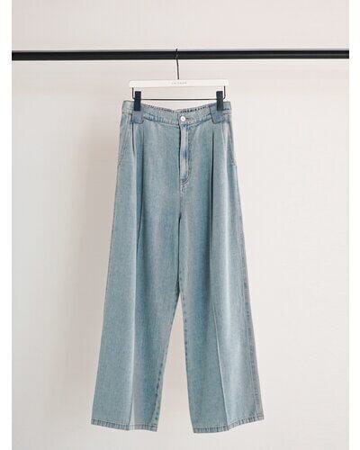 スラックスを思わせる2タックデザインをデニムに落とし込みました。