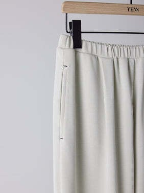 フィブリル加工のダブルジャージー生地で仕立てたスラックスパンツです。