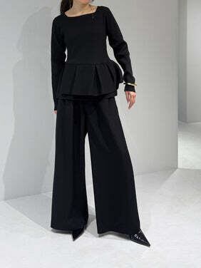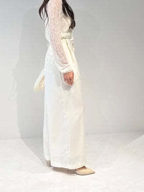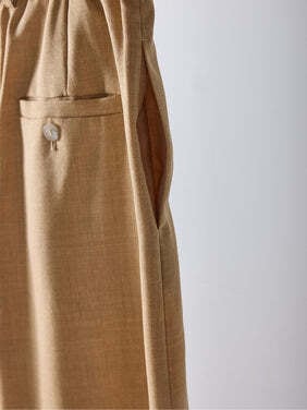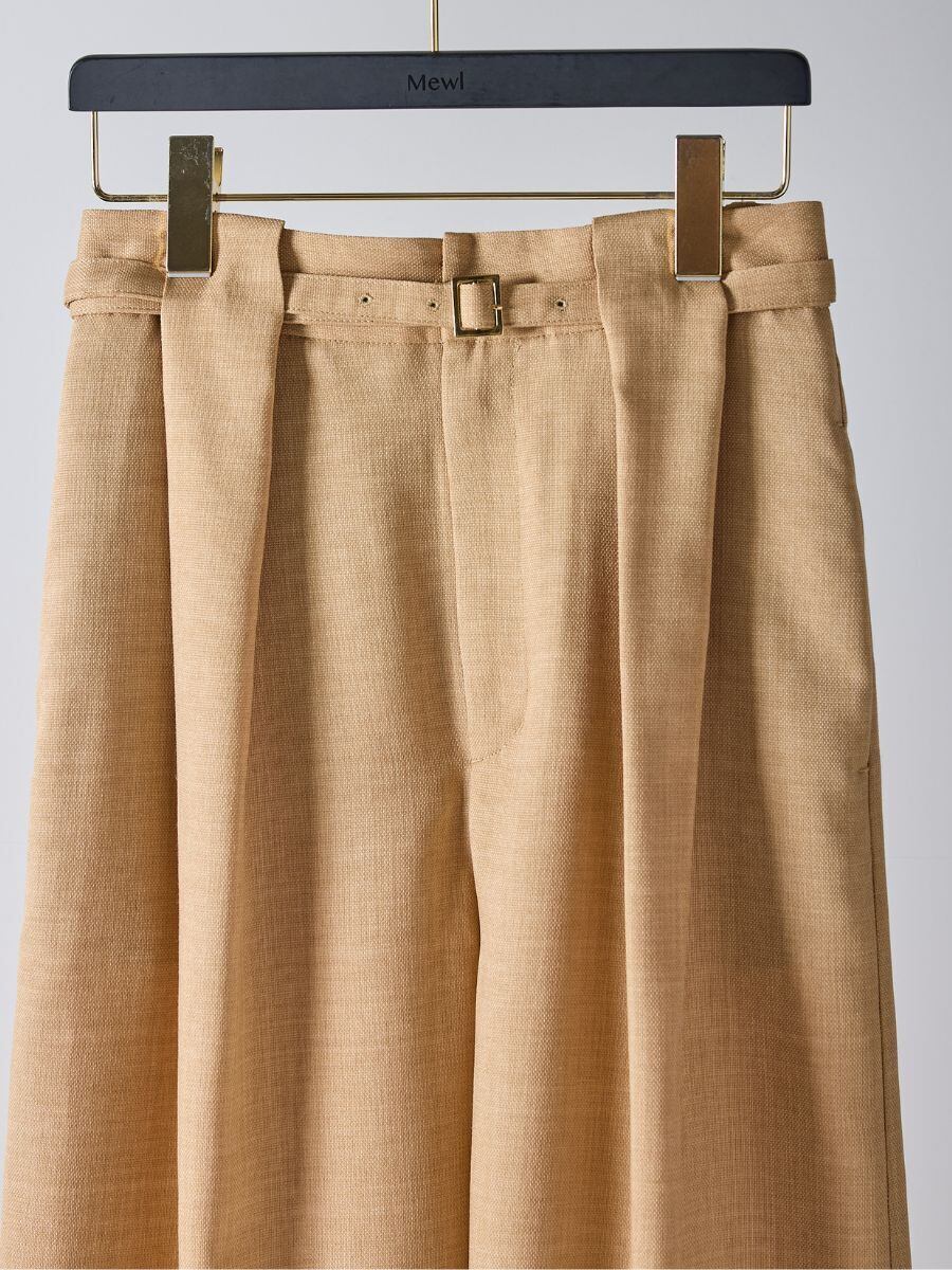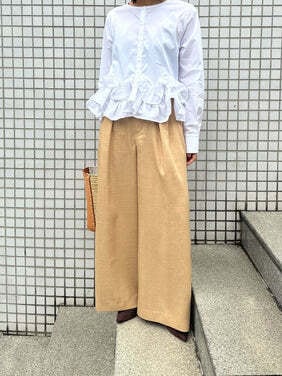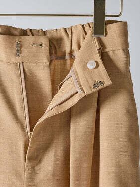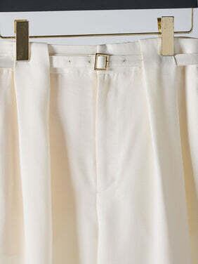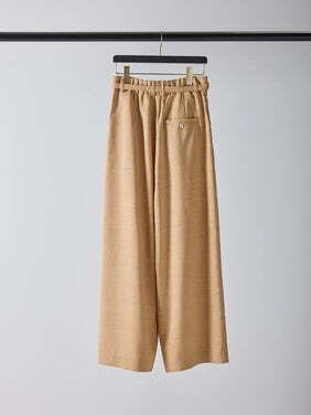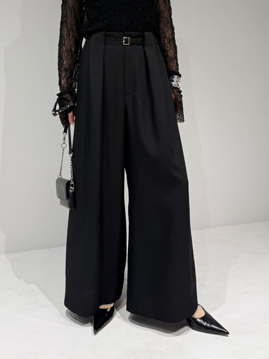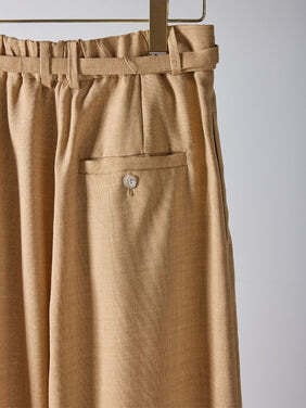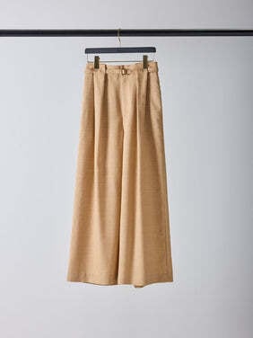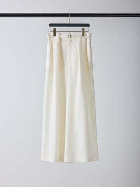 共布ベルトをタック奥に通した立体的なデザインで、シンプルながらも一枚でコーデが決まるワイドパンツ。