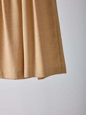 気になるウエストまわりはタックで自然にカバーしつつ、細ベルトでスタイルにメリハリを。