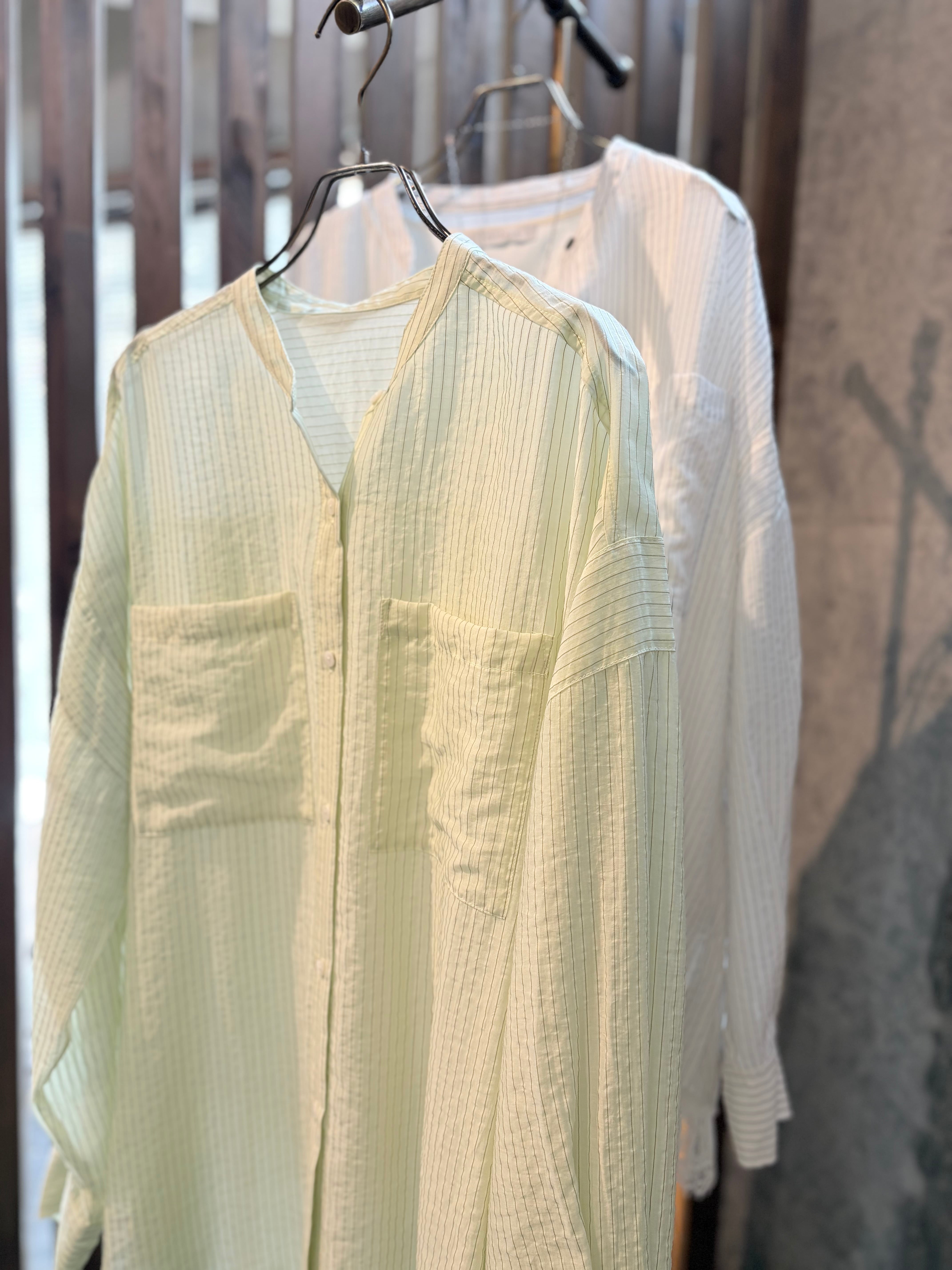 程よいシアー感と軽やかなストライプ柄が魅力のオーバーシャツ。
