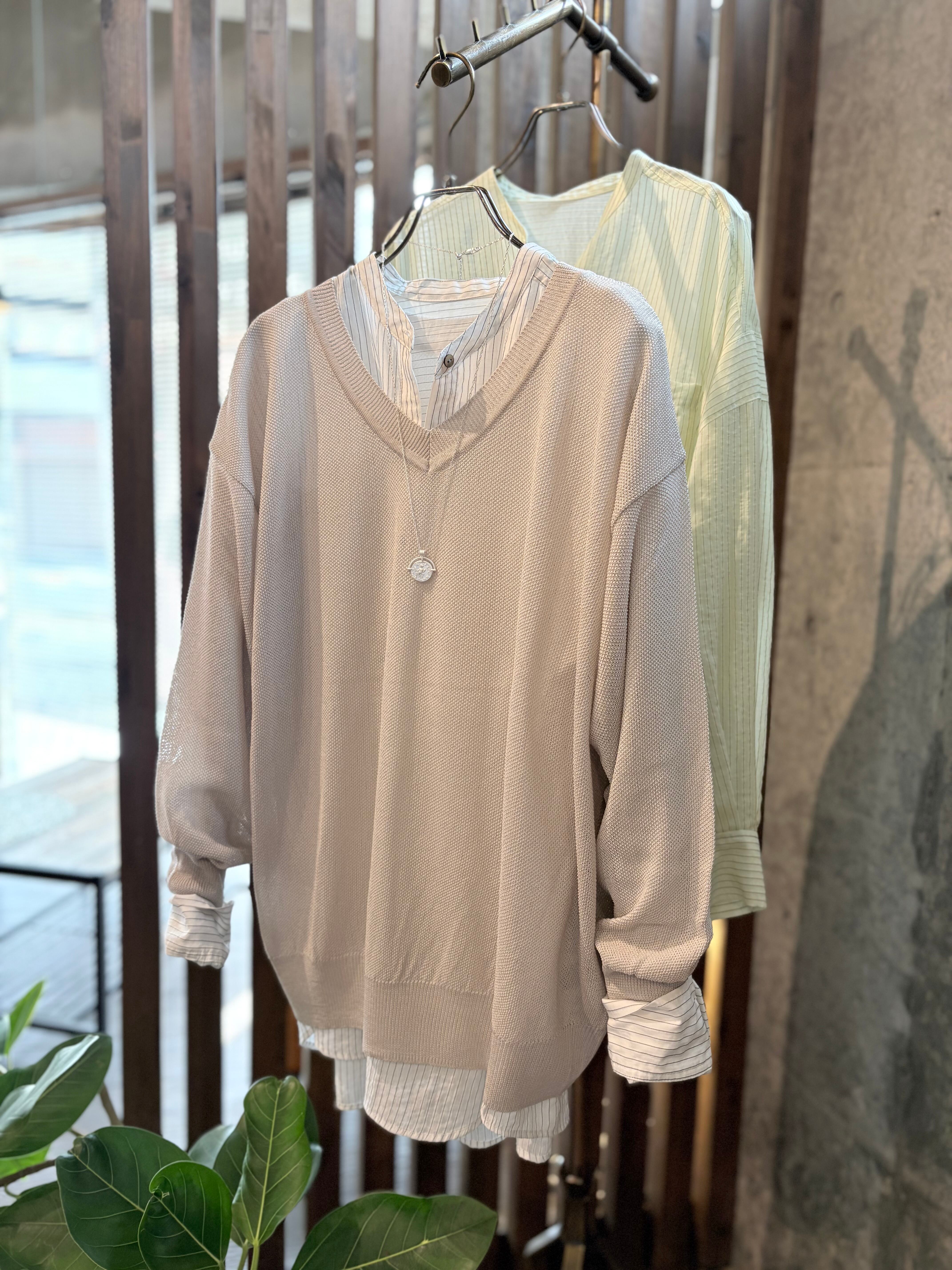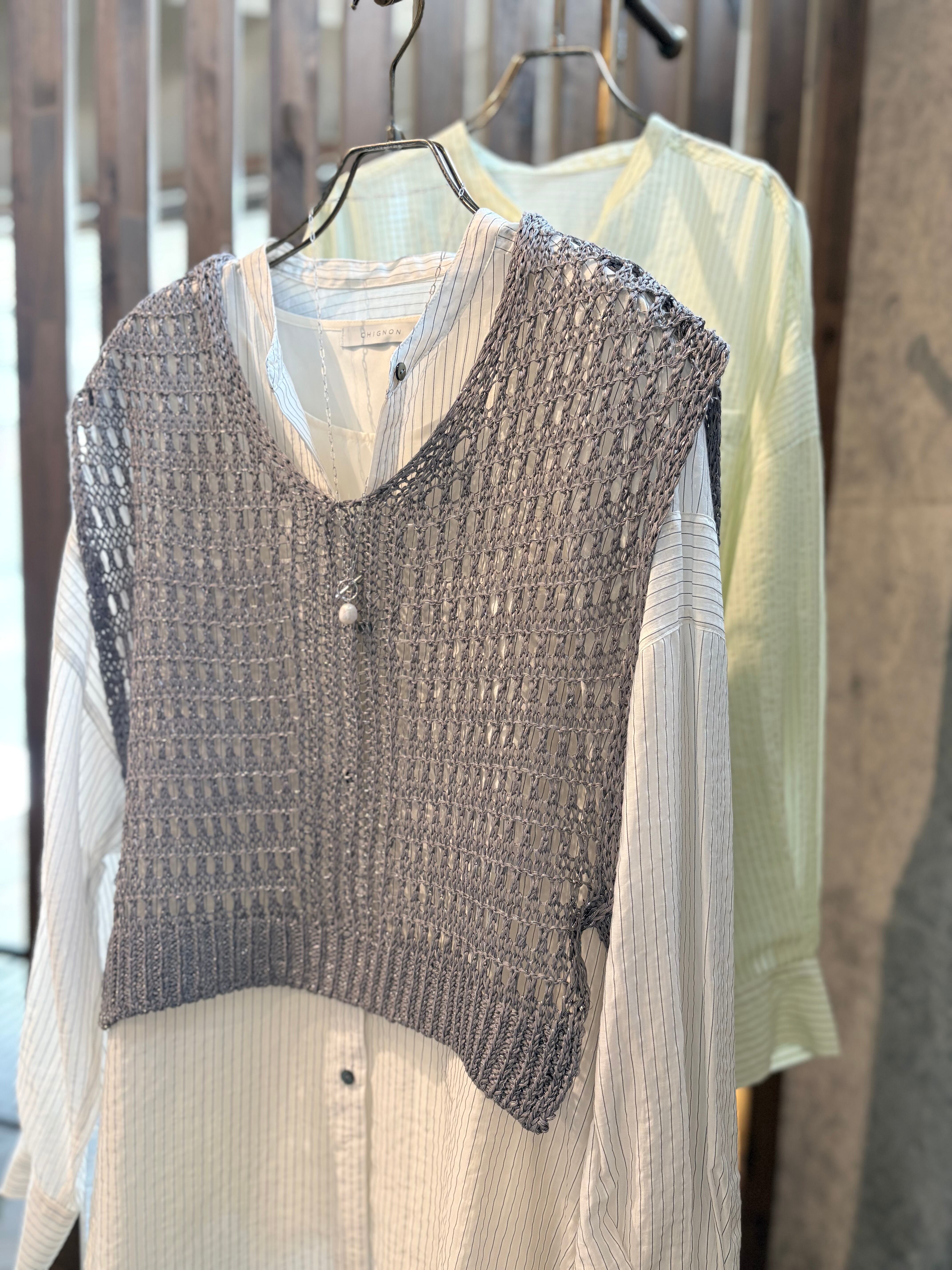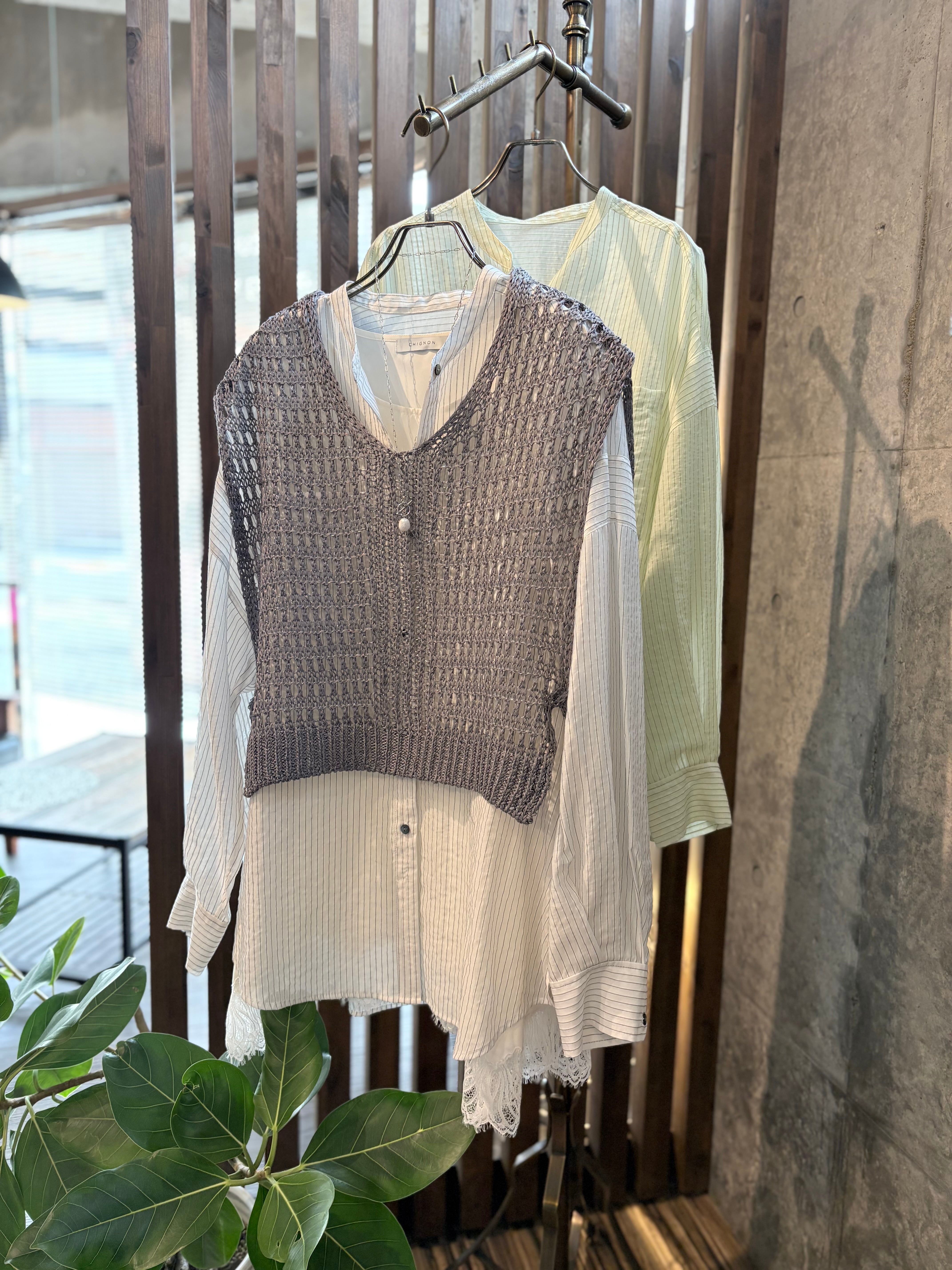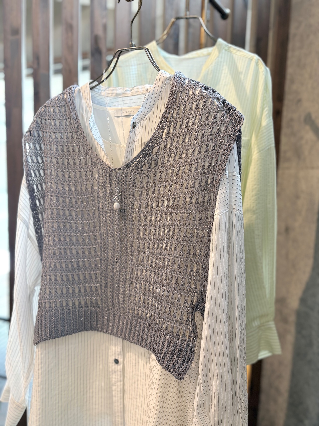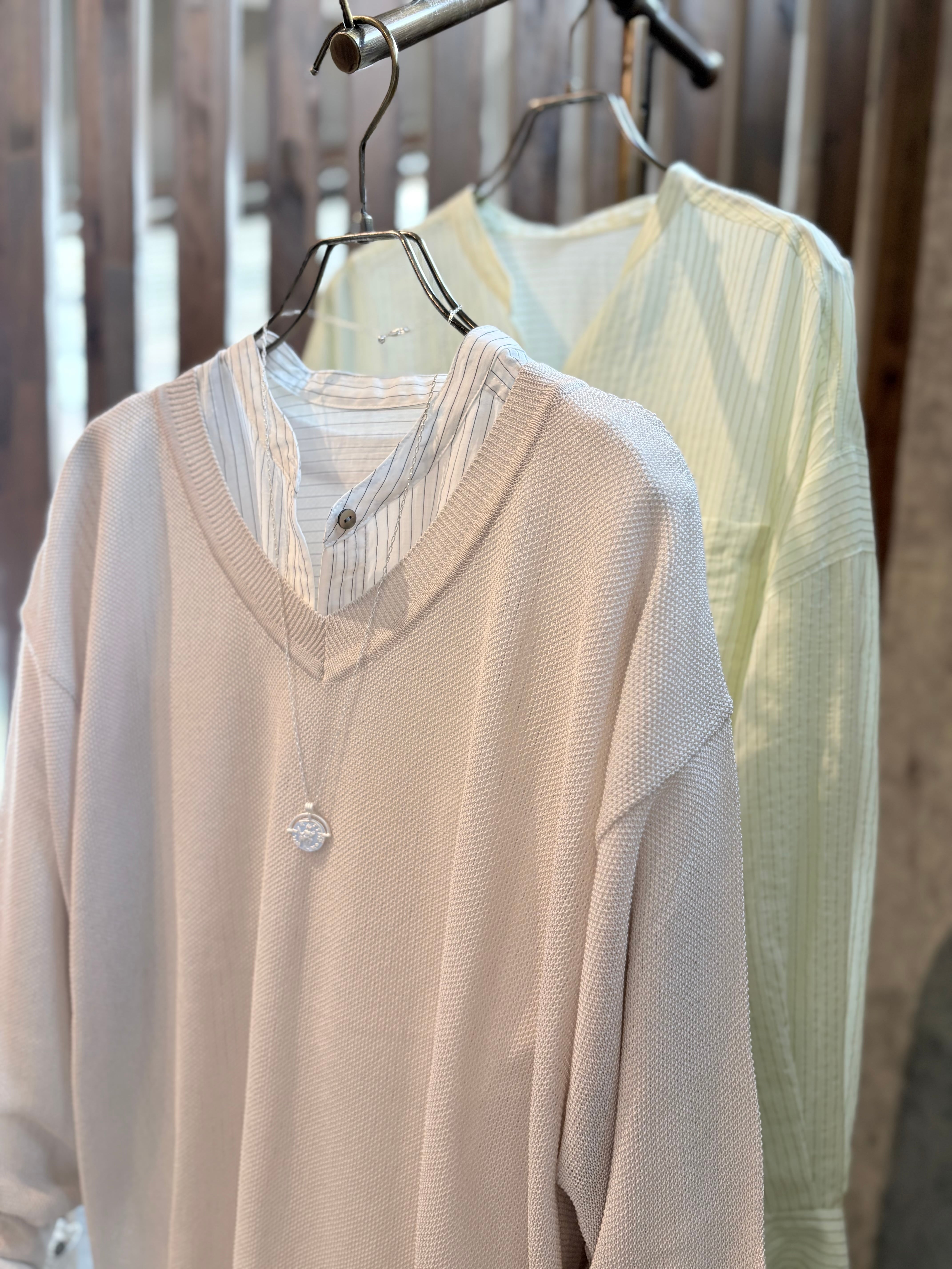 ニットやスウェットの下に重ねてシアー感を楽しんだり、Tシャツやタンクトップの上に軽く羽織って日除け・冷房対策にもでき、長いシーズン活躍するアイテムです。