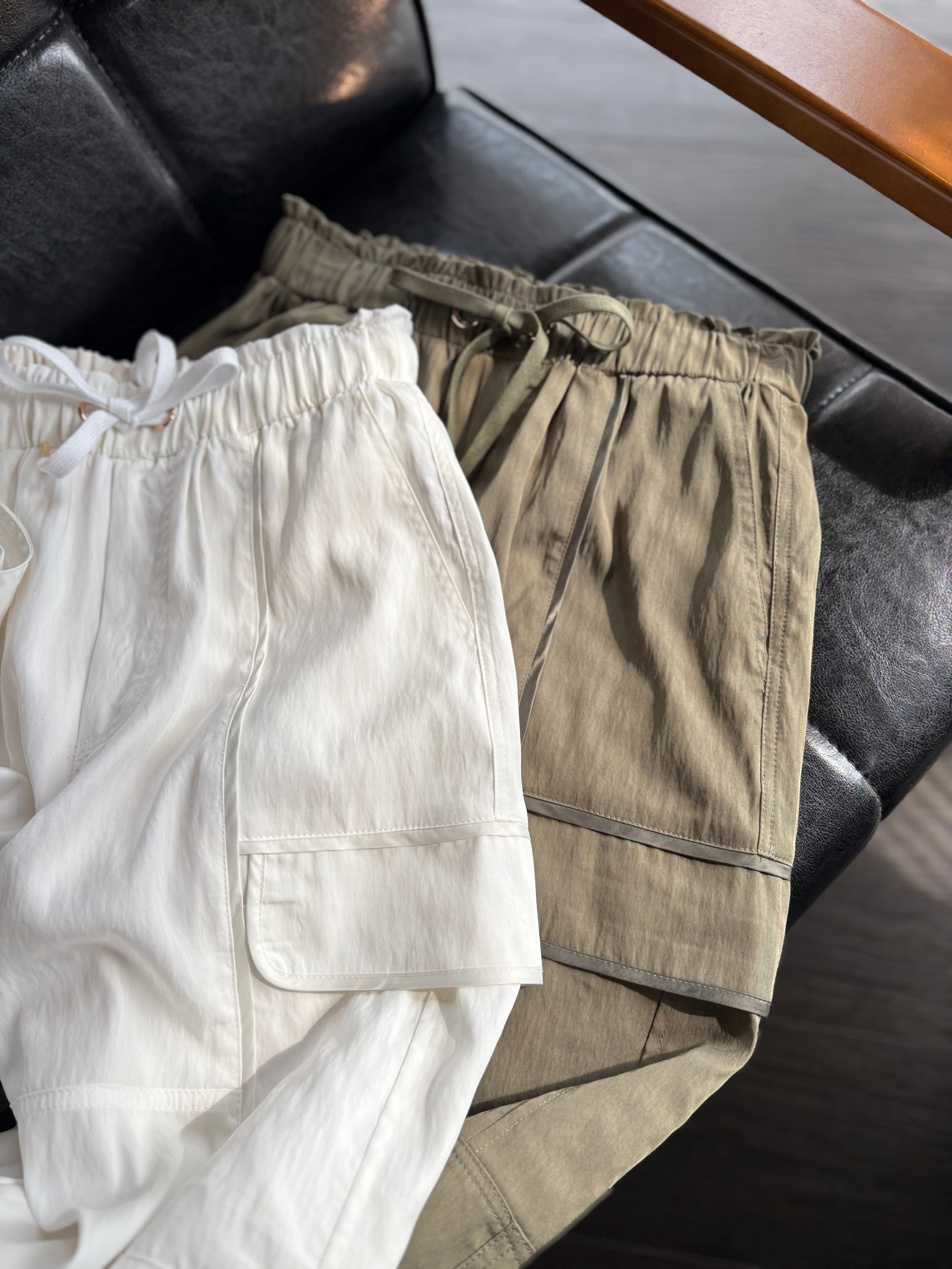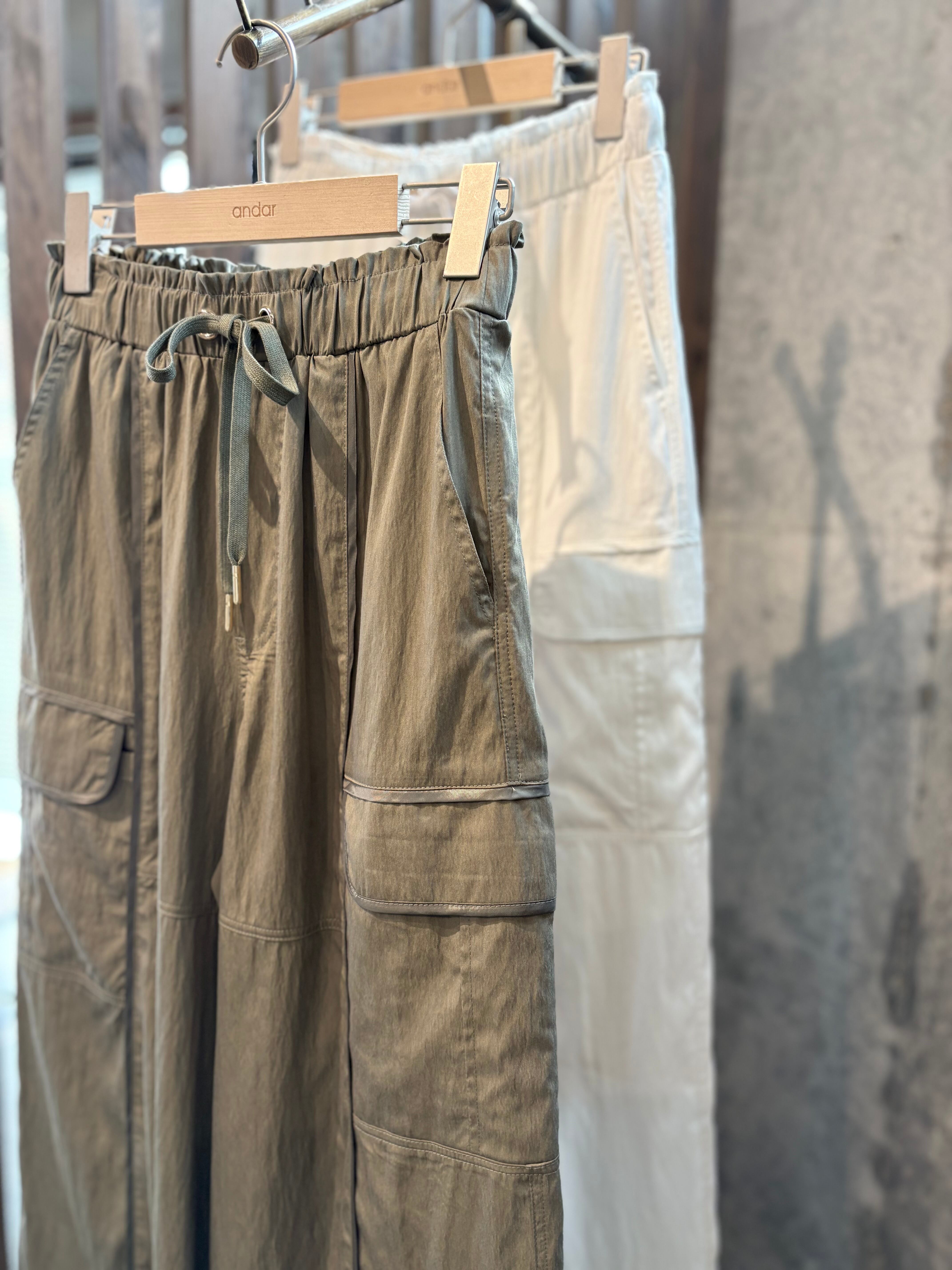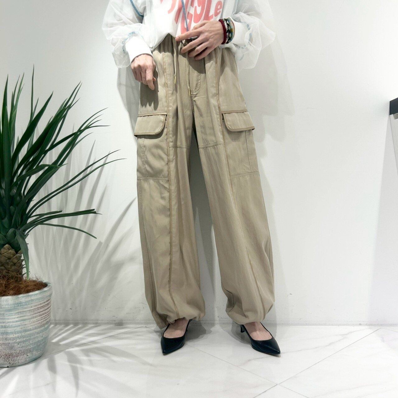 サイドの立体的なカーゴポケットは、視線を外側に逃がすことで気になるヒップラインをさりげなくカバー。