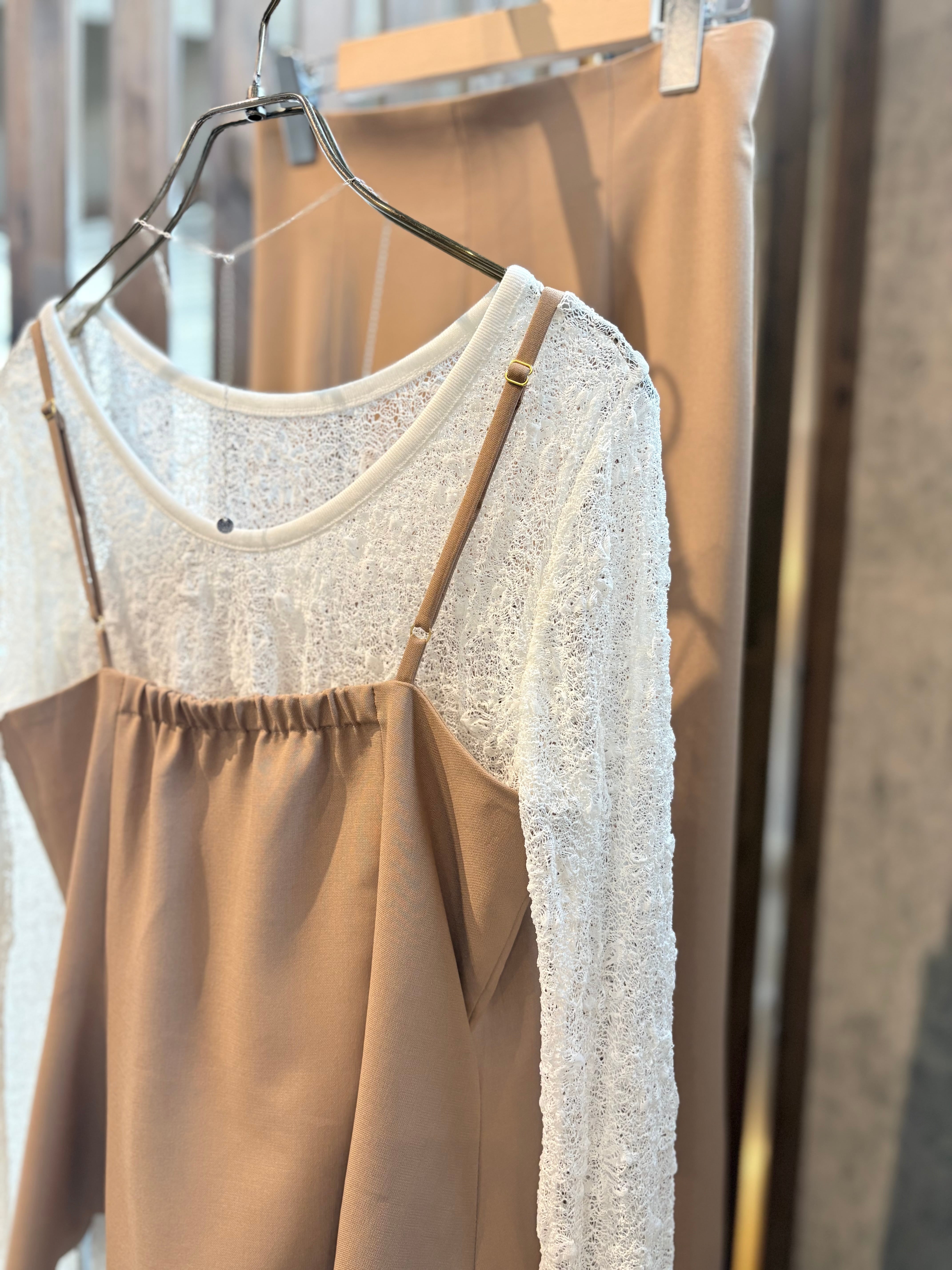 Tシャツや、シアートップスなどとのレイヤードスタイルや、ジャケットのインナーとしても単独で着用しても華やかさをプラスできます。同素材のパンツやスカートはもちろん、デニムとの相性も良く、カジュアルなスタイルから少しおしゃれを楽しみたい時まで、幅広く活躍します。アクセサリーやカーディガンと合わせることで、一層おしゃれ度をアップさせることができます。