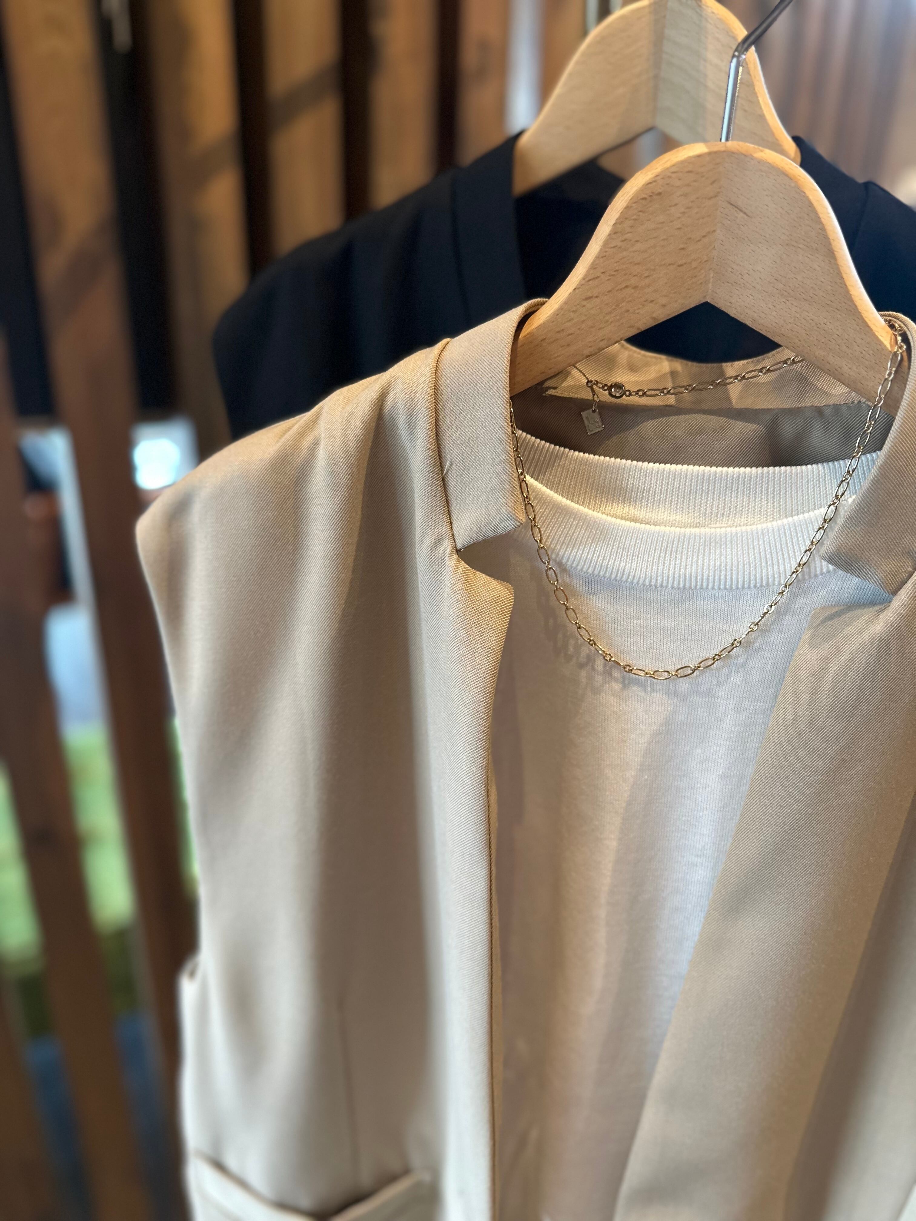 シンプルなブラウスやカットソーに合わせて頂くだけで旬なレイヤードを楽しんで頂けます。