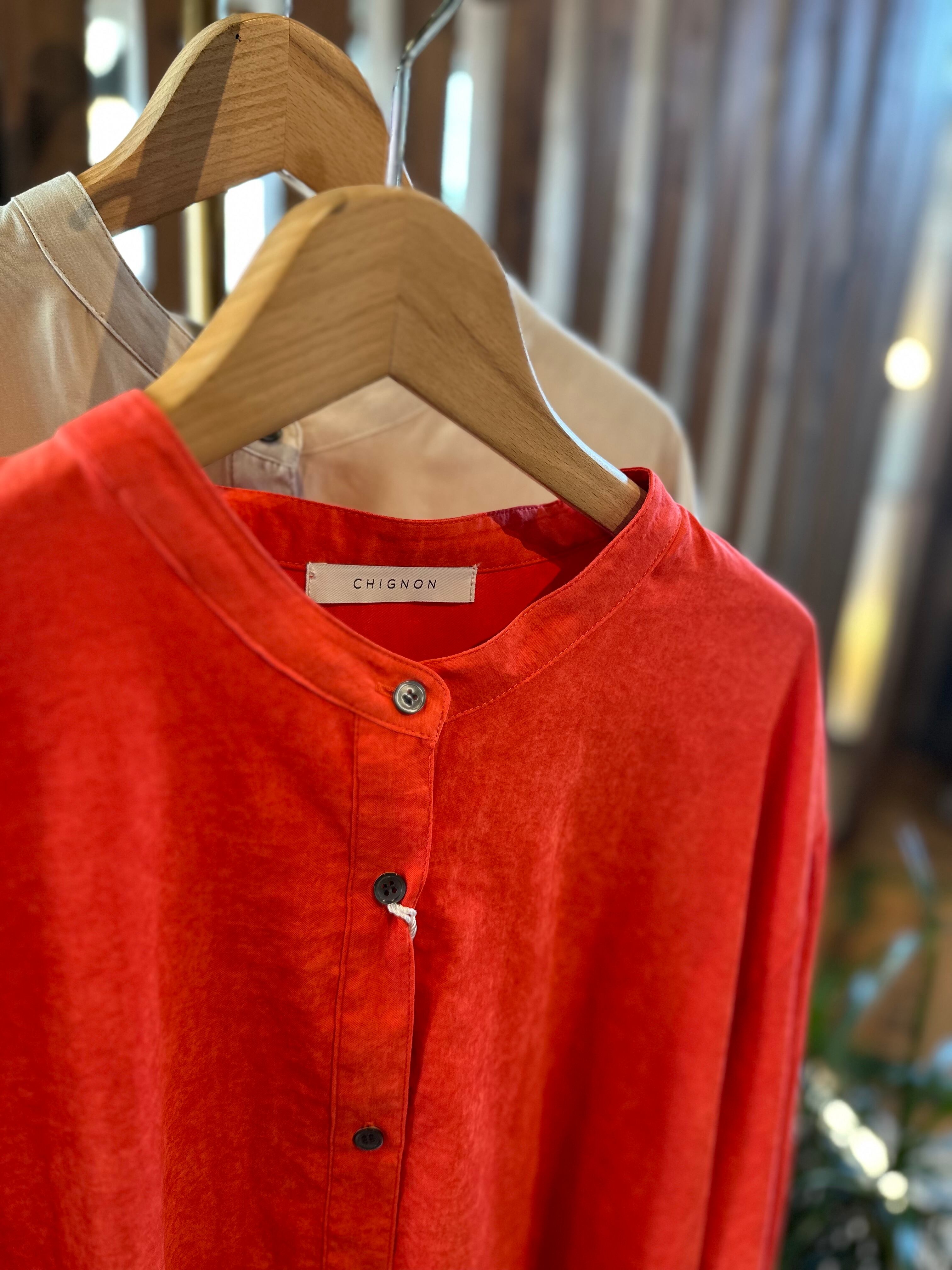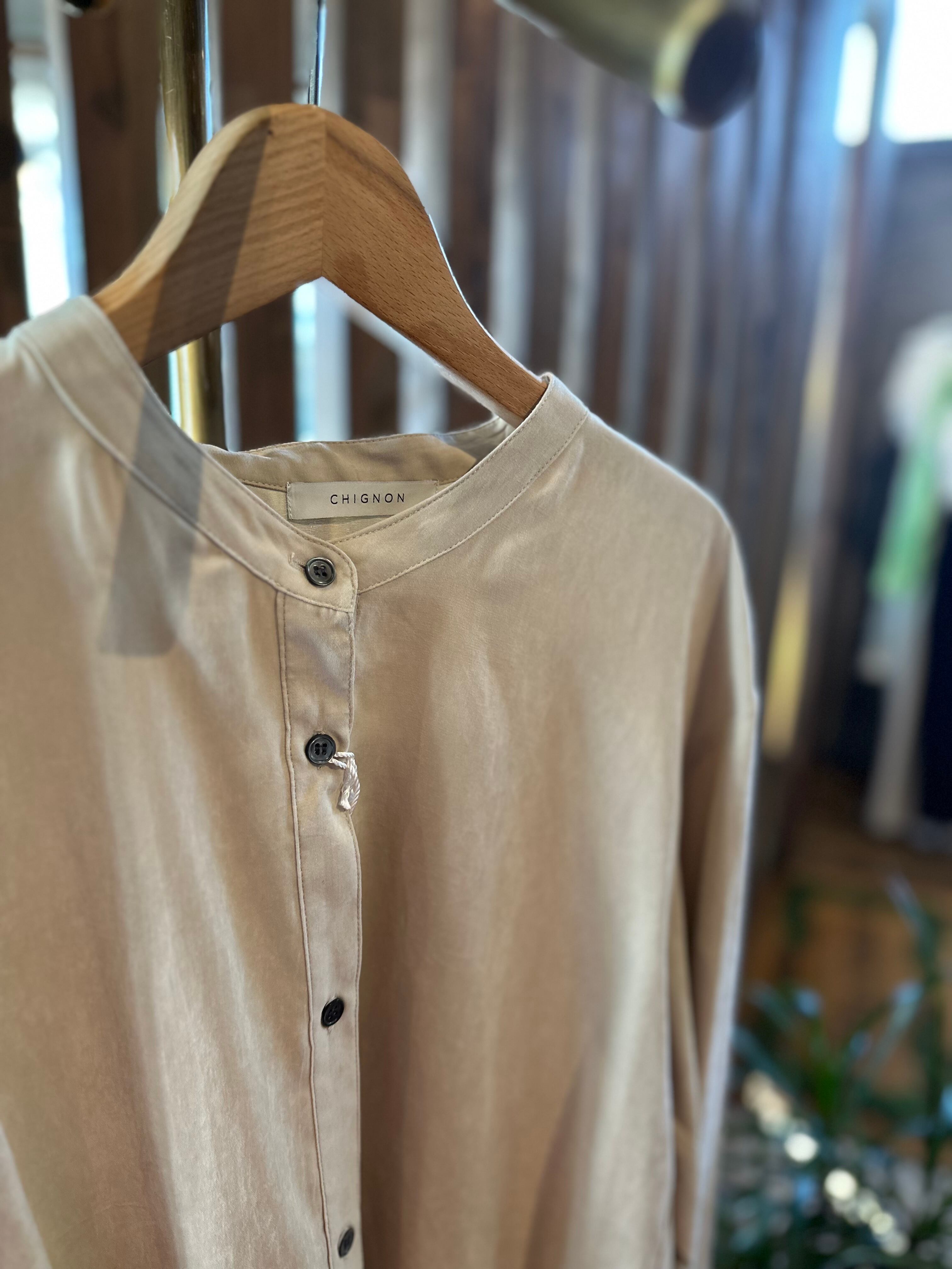 左ウエストの釦に前立てのホールをとめるとカシュクールデザインにもなり