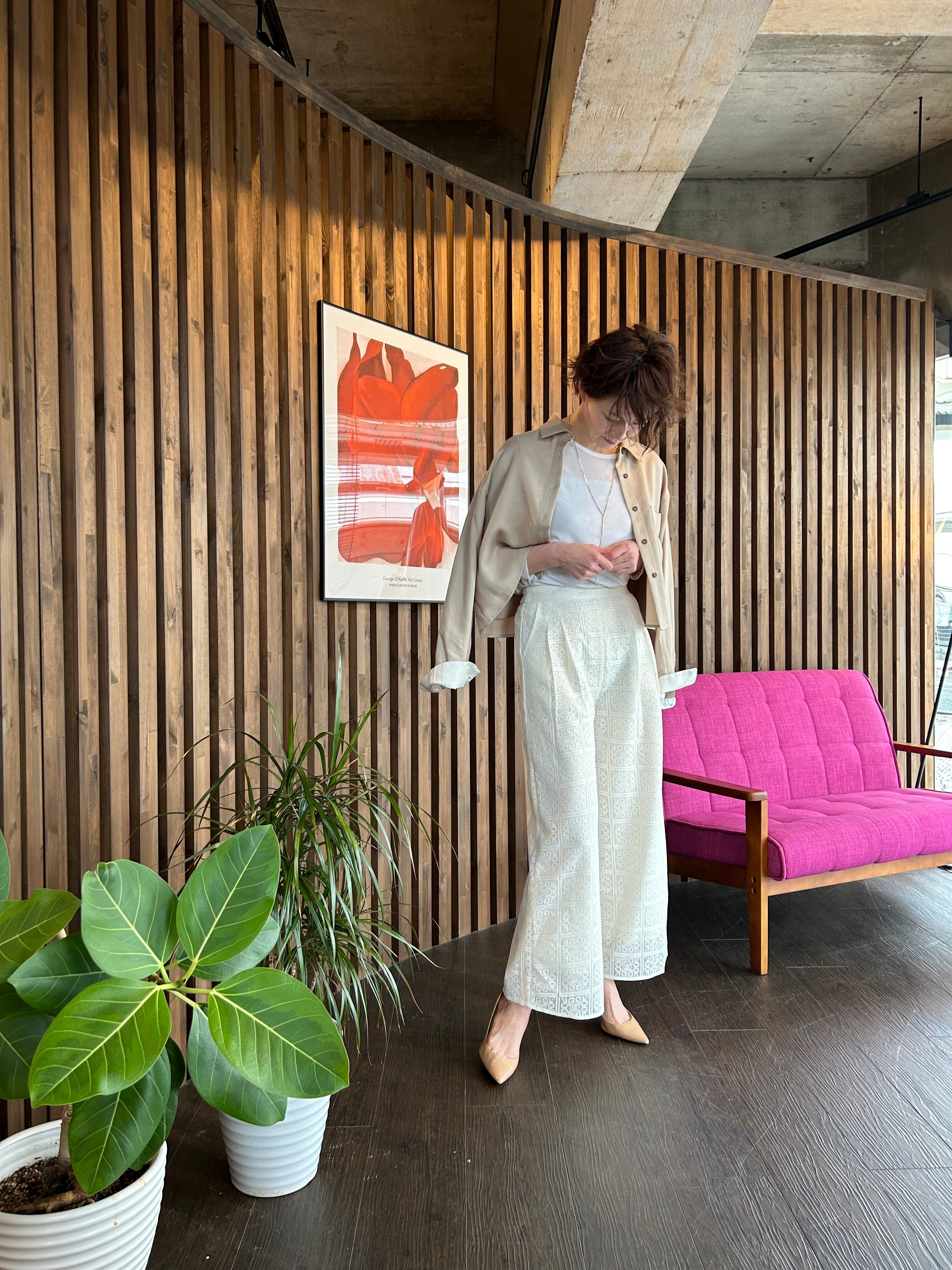 シンプルなトップス合わせもいつもとは一味違う鮮度のあるコーデが完成します。