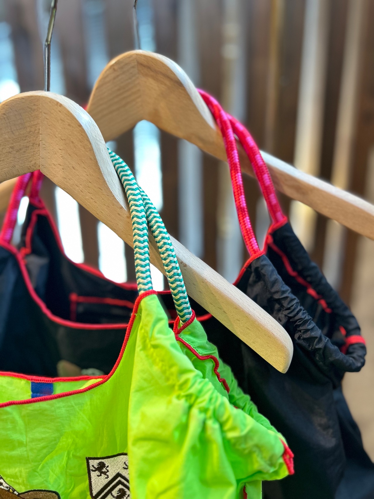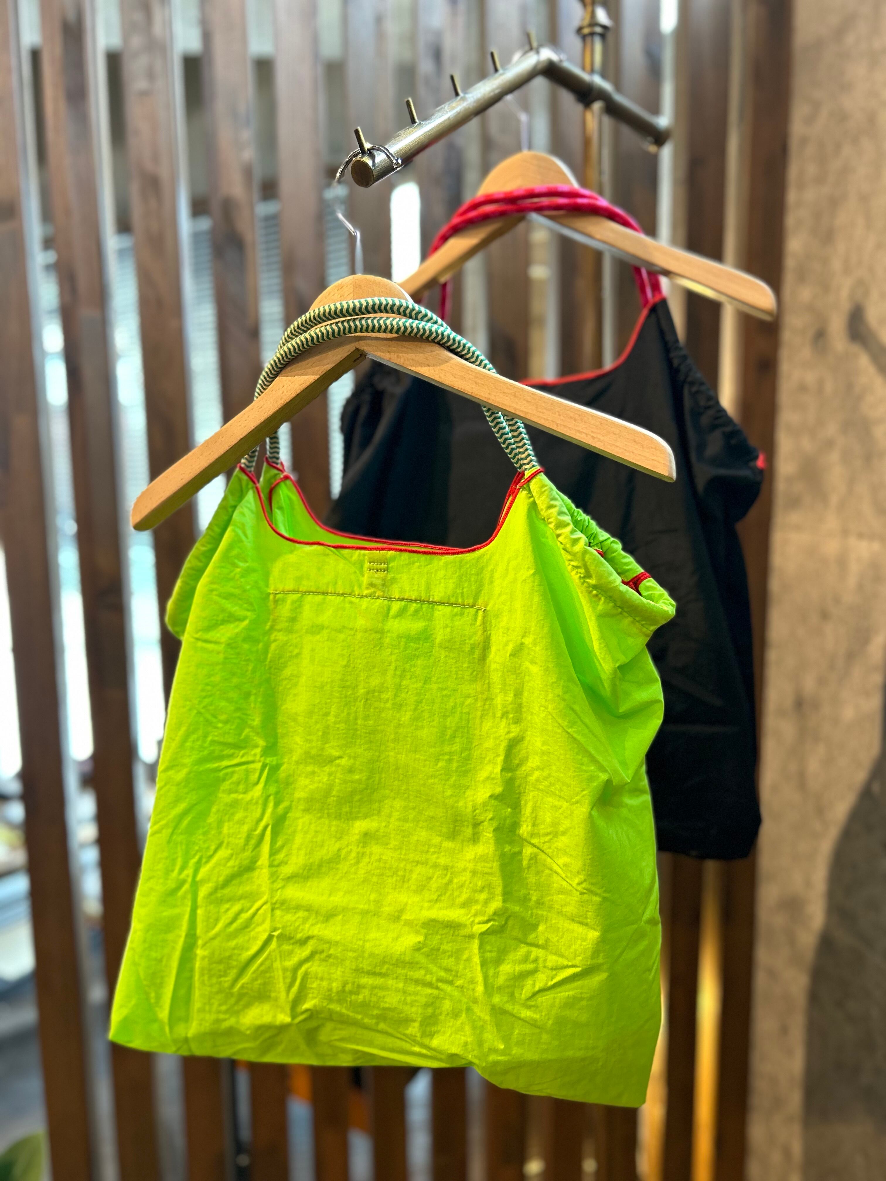 タフな生地と紐を使用し耐荷重20キロと重たい荷物も収納可能。