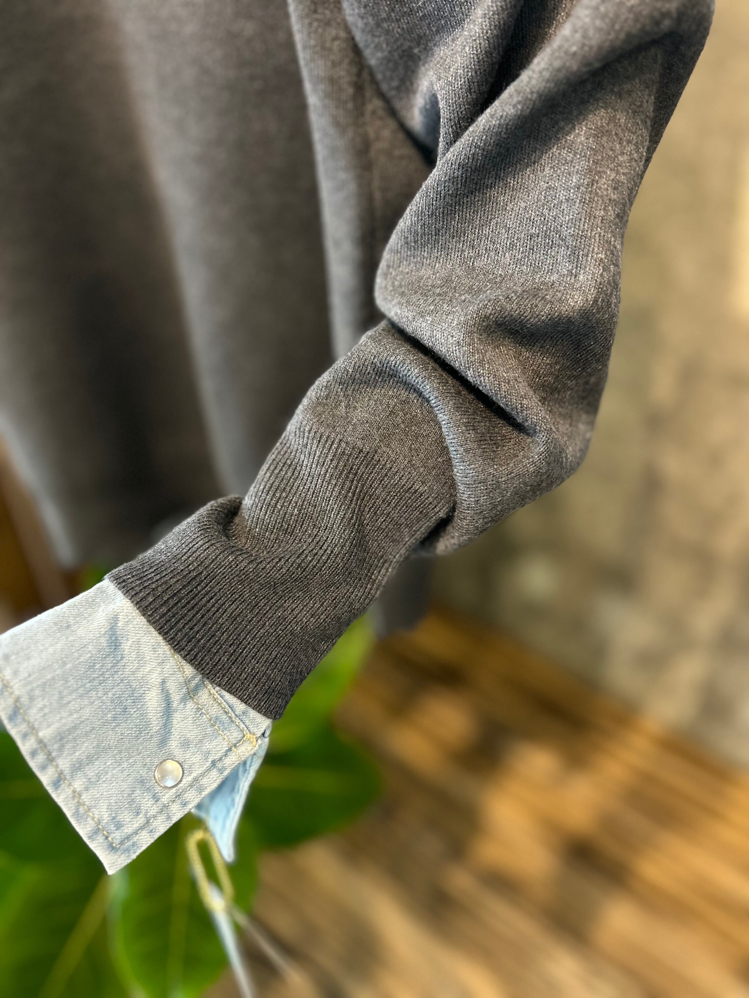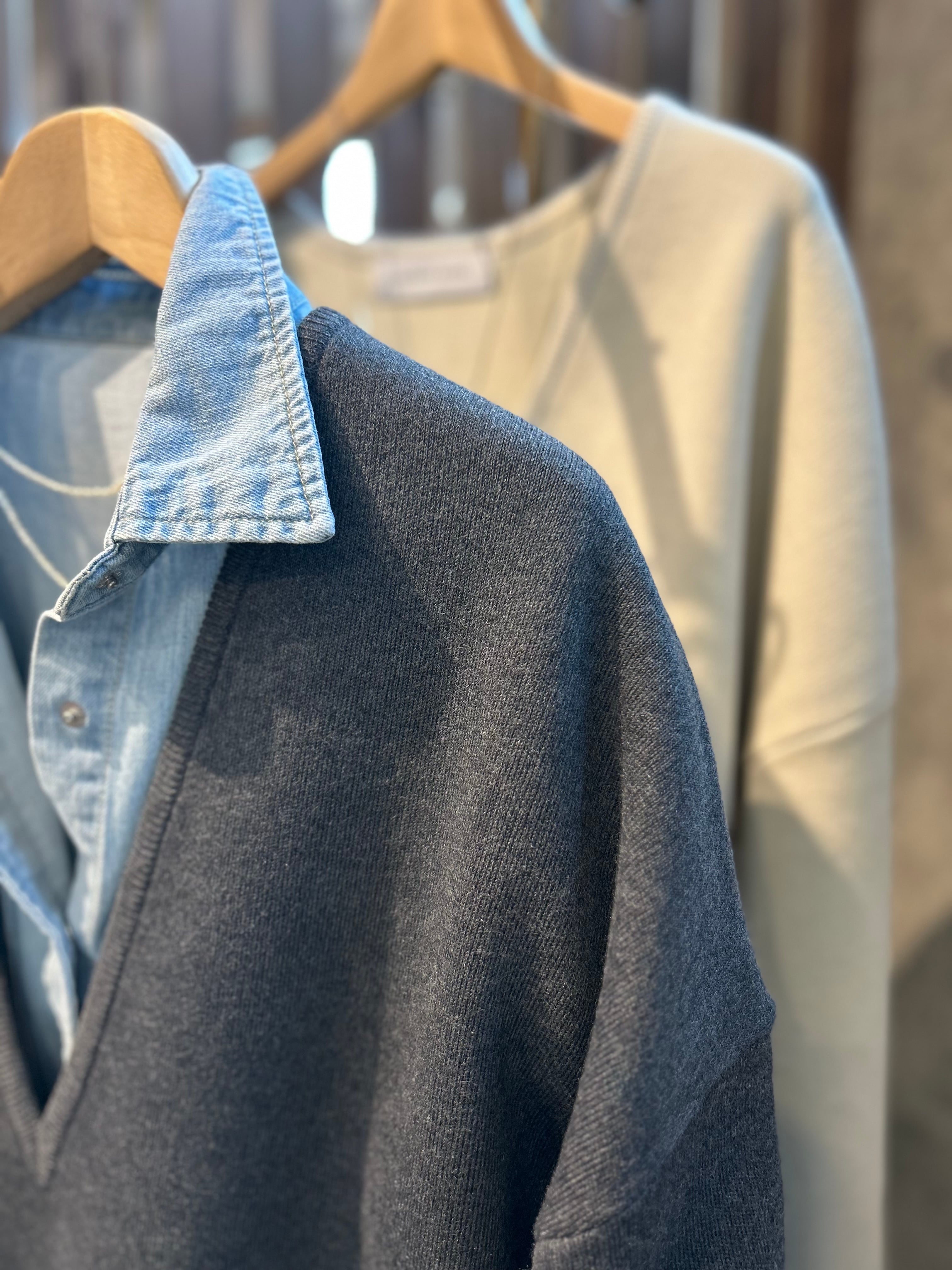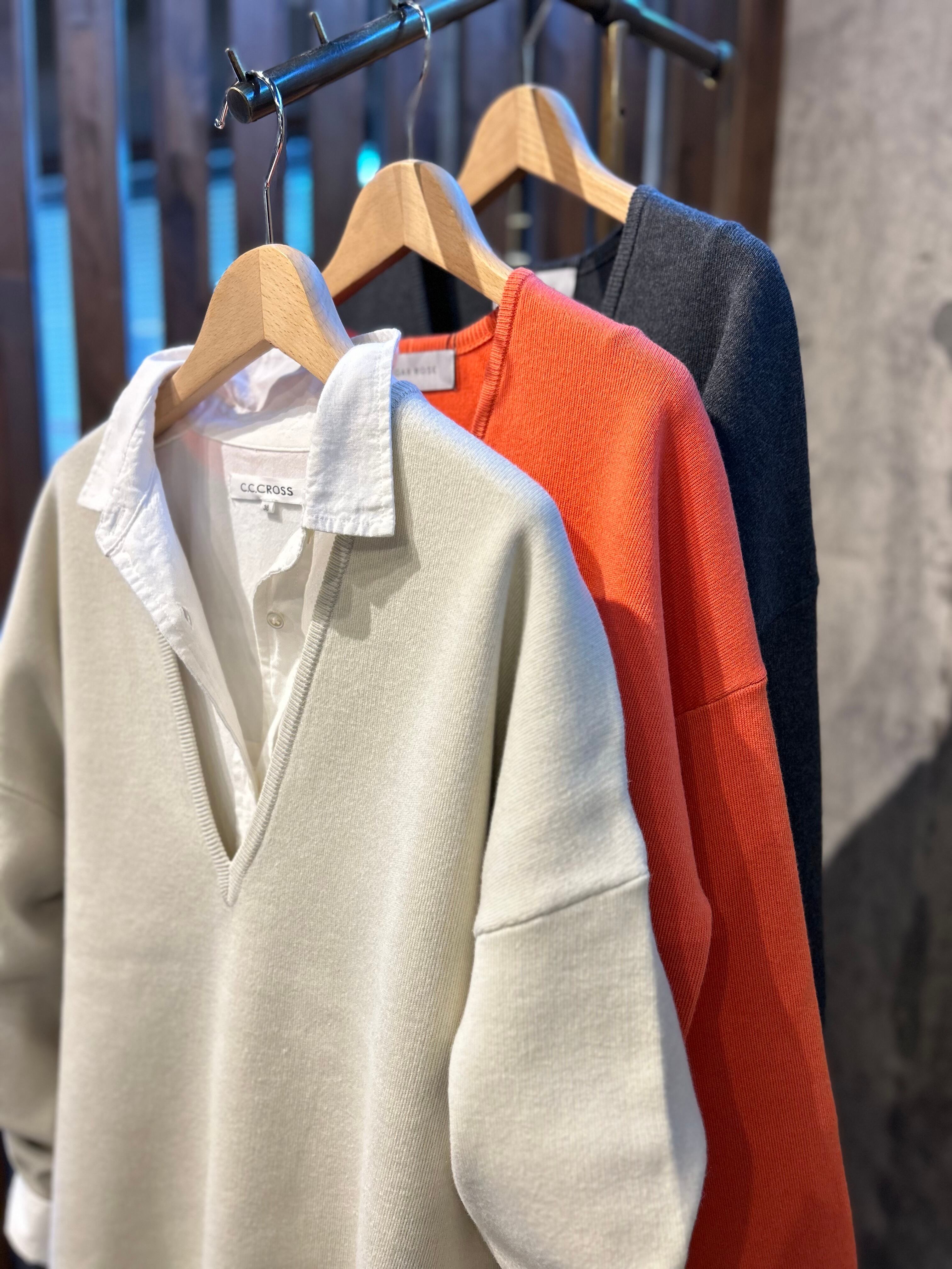 カットソーや、ハイネックなインナーとレイヤードして合わせて着用していただくとオシャレに着こなせます。