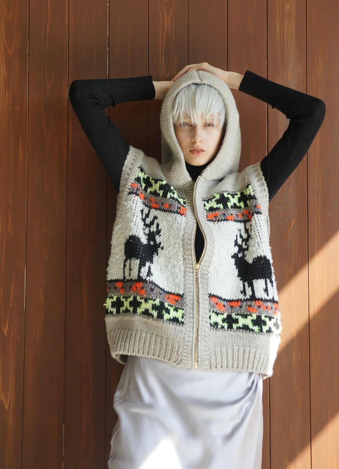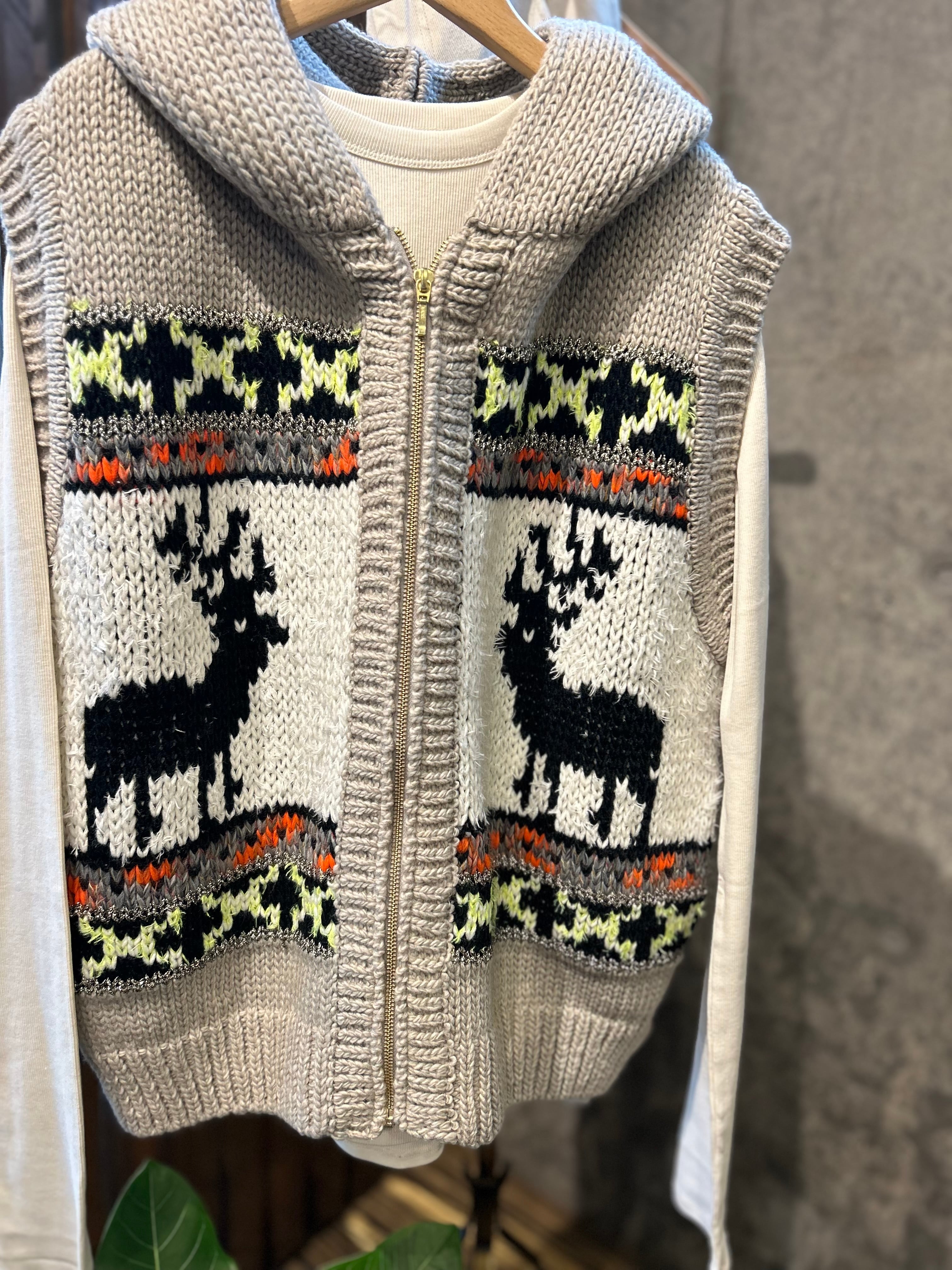 冬の装いに差がつく、スタイリッシュな大人のカウチン柄ニットベスト。